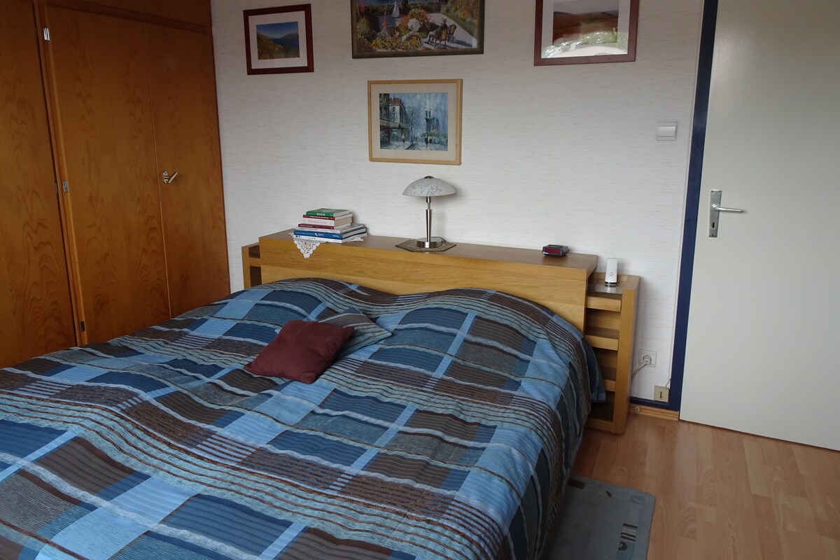 Վերևում ՝ բնակարան, վերանորոգված, անկախ մուտք ։ Ննջասենյակ ՝ հեռուստացույցով, մեկ սենյակ ՝ բազմոցով, գրասեղանով և հեռուստացույցով, խոհանոցի կահավորված տարածք, ճաշասենյակ, լոգասենյակ ՝ ցնցուղով և օդորակիչով ։ Շատ բարձր արագությամբ Wi - Fi և կայանատեղի ։ Մենք ապրում ենք կայքում և հասանելի ենք ցանկացած հարցի համար: Գտնվում է Ստրասբուրգի կենտրոնից 15 րոպե հեռավորության վրա, Զենիթից 5 րոպե հեռավորության վրա, Էլզաս Վայն Ռոուդից 10 րոպե հեռավորության վրա և Եվրոպա զբոսայգուց 45 րոպե հեռավորության վրա ։ Կացարան, որը հարմար է պրոֆեսիոնալ հանձնարարությամբ մարդկանց համար