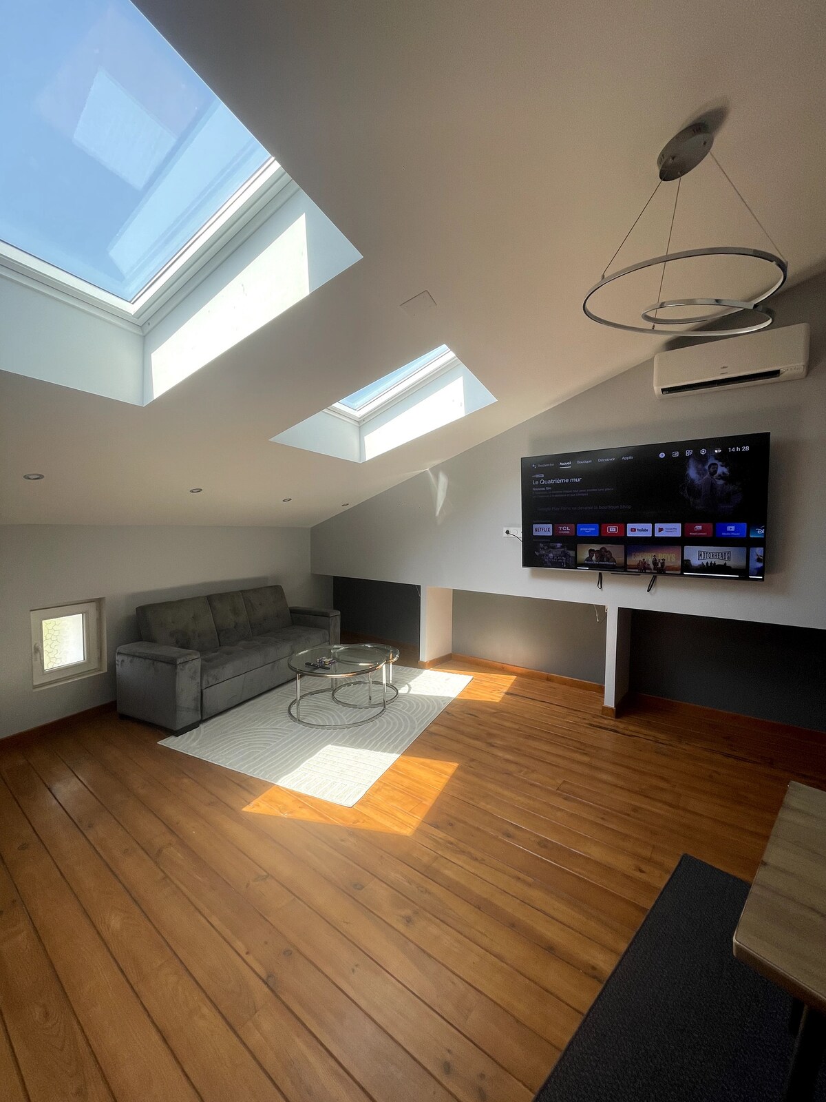 Գտնվում է առանձնատան 3-րդ և վերին հարկերում, շատ հանգիստ փողոցում։ Ձեզ համար բացվում են այս պատմական քաղաքի տանիքների (քաղաքապետարանի շենքը և շուկայի սրահները 30 մետր հեռավորության վրա են) անզուգական տեսարաններ։ 120 մ2 մակերեսով այս շատ պայծառ կացարանը, որը չի անտեսվում, բացահայտված ճառագայթները միավորում են հմայքն ու հարմարավետությունը ։ Այն ունի 3 ննջասենյակ, լոգասենյակ և տրավերտինից ցնցուղարան, որոնք կատարյալ են հանգստյան օրերին ընկերների և ընտանիքի հետ անցկացնելու համար։ Նոր անկողնային պարագաներ։ HDTV, Netflix Բոնուս. 🍷 անվճար շիշ գինի Կայանատեղ 50 մետր հեռավորության վրա
