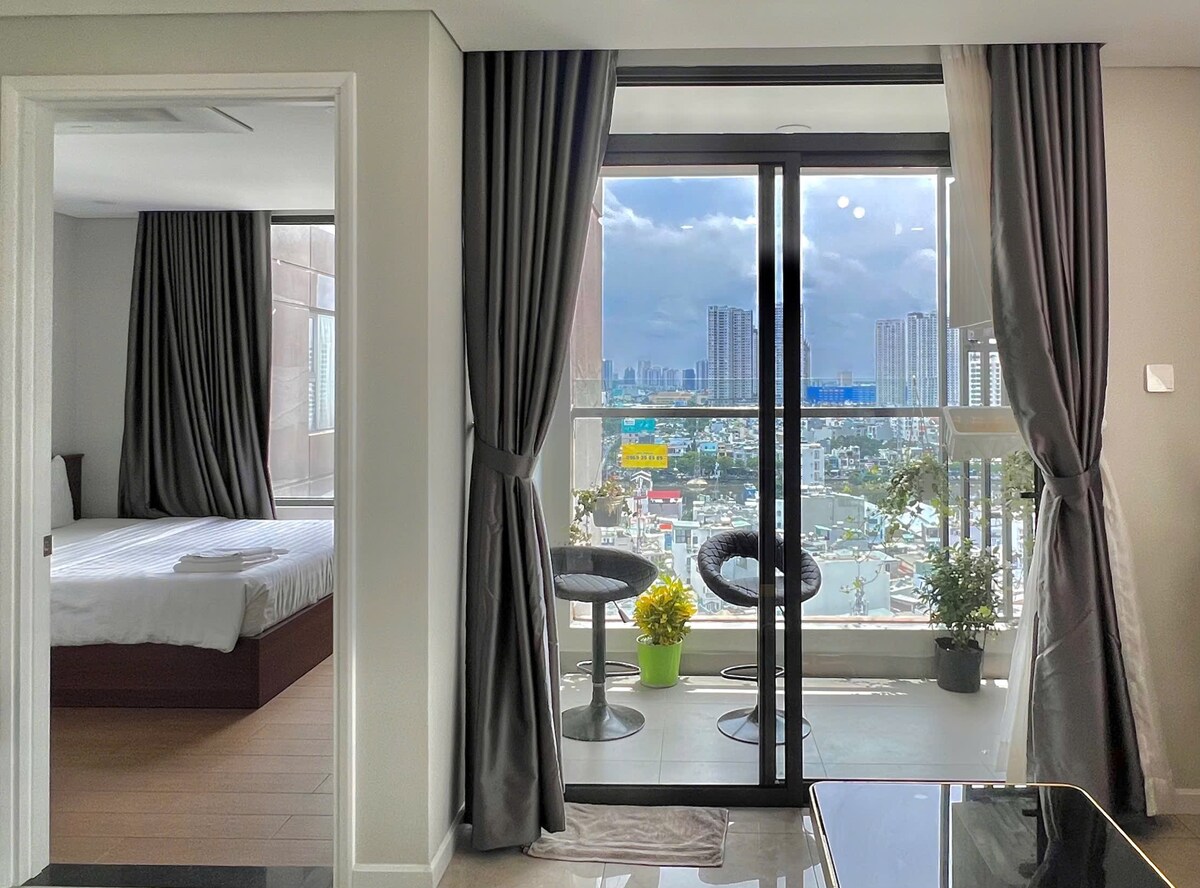 11 - րդ հարկի շքեղ վերելակ Բնակարան ՝ քաղաքի տպավորիչ տեսարանով , The One Sai Gon Building - ում ՝ 1 - Բեն Թան շուկայի թաղամասի սրտում: Այս բնակարանը գտնվում է լավագույն վայրում ՝ Բուի Վիեն քայլող փողոցից, Բեն Թան Մարկետից, Կերպարվեստի թանգարանից, ԱՎՏՈԿԱՅԱՆԻՑ, Տակաշիմայա Սայգոնից, գեղեցիկ ռեստորաններից և բարերից ընդամենը մի քանի րոպե հեռավորության վրա : Այս տարածքը ջերմ հանգստություն է առաջարկում այն հոգնած ճանապարհորդին, որը տուն է փնտրում տնից հեռու ։