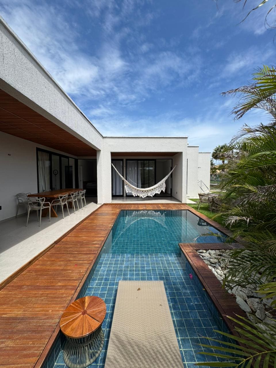 A Casa Flor Cumbuco é situada na avenida central a 50m da praia do Cumbuco perto da vila com restaurantes, bares e lojas. 5 suítes todas com ar condicionado e novas camas box queen. quartos espaçosos com armários e banheiros com agua morna Uma ampla sala e cozinha toda equipada com as necessidades para uma excelente estadia. campo de futebol /vôlei, sauna, mesa de sinuca e uma piscina grande amplo espaço relax com bar e churrasqueira e sinuca. churrasqueiro e bar man