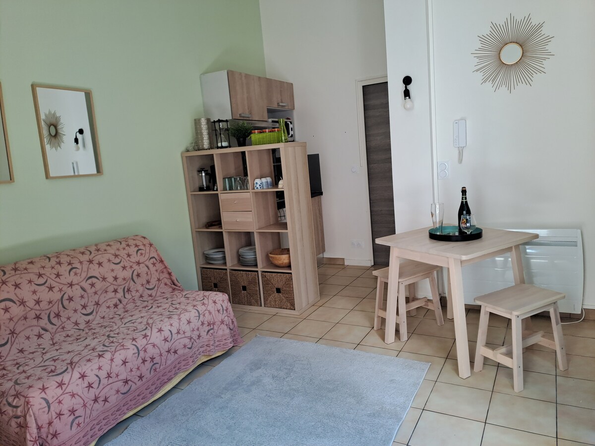 33 մ² մակերեսով հյուրատուն, Բորդոյի երկաթուղային կայարանից 20 րոպե հեռավորության վրա, Բորդո - Մերիգնակի օդանավակայանից 15 րոպե հեռավորության վրա և Արկախոնի ավազանից 40 րոպե հեռավորության վրա (ուղիղ մուտք դեպի A63 ավտոմայրուղի), որը իդեալական է Բորդո և նրա շրջակայք այցելելու համար: Իր կահավորված խոհանոցով (ջեռոցով, մեծ սառնարանով, ինդուկցիոն ափսեներով, սպասքով, սուրճի ապարատով), հյուրասենյակով և բազմոցով, որը փոխարկվում է երկտեղանի մահճակալի, լոգասենյակով ՝ իր մեծ ցնցուղով և 160x2 մ երկտեղանի մահճակալով, ոչ մի լավ բան չկա հաջող այցի համար: