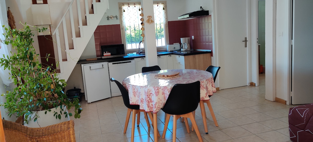 120 մ2 շատ հմայիչ քոթեջ, որը գտնվում է Պերիգորդում, Բերգերակի և պերիգյուի միջև: Հյուրերը կարող են հանգստանալ լողավազանի եզրին գտնվող լողավազանի մոտ ՝ իր գեղեցիկ տեսարանով և հանգիստ տարածքով ։ - Կացարան - Խոհանոցի կողմը դուք կգտնեք բոլոր հիմնական պարագաները 2 ննջասենյակ, 1 լոգասենյակ ցնցուղով և WC - ով A TV տարածք Վերանդա սեղանների աթոռներով ... Ընթերցանության անկյուն - EXTERIOR - Մասնավոր ավտոկանգառ Քարե այգու կահույք Խորովածանոց Լողավազան տանը մոտ գտնվող բիզնես