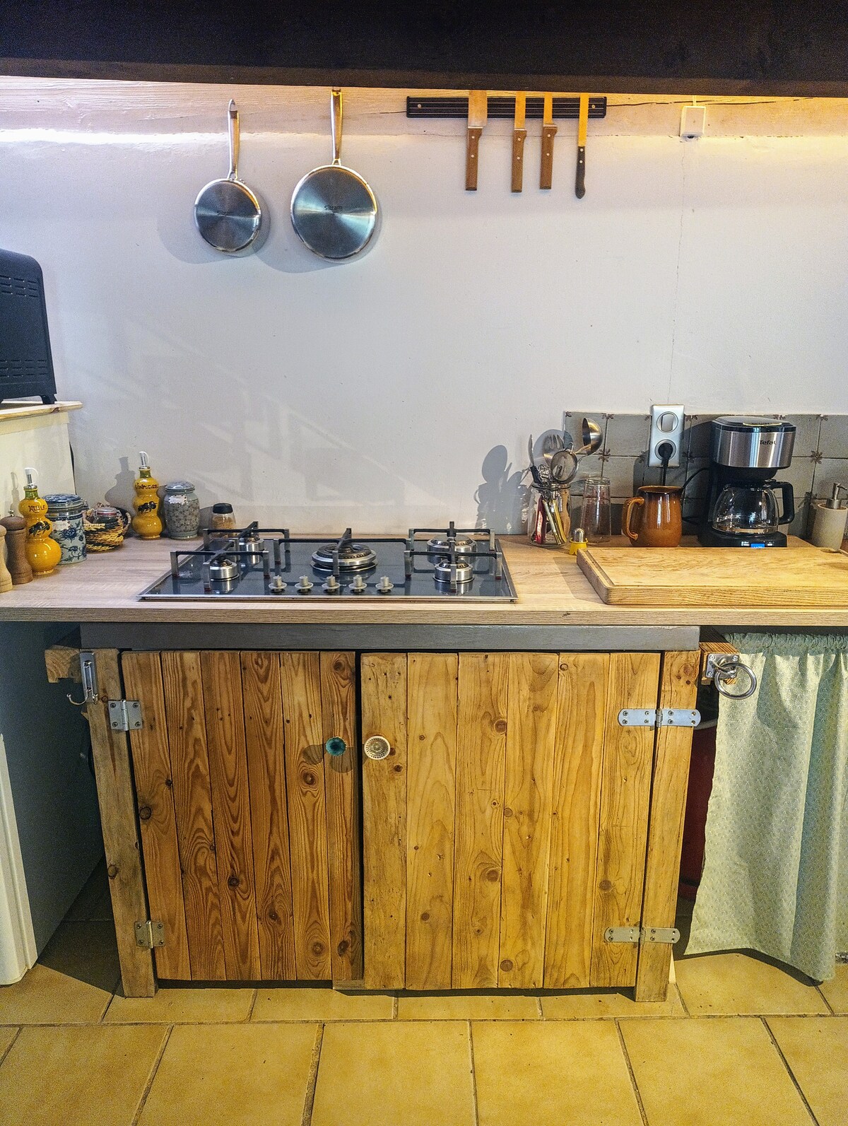 Hébergement insolite dans l'ambiance "hobbit" niché au fond d'un jardin sauvage avec vue sur la ville. L'accès se fait par un chemin de randonnée (pentu). Le logement se compose d'un séjour avec cheminée, une petite cuisine, une alcôve pour la chambre, une petite salle de bain, une terrasse avec la vue sur la vallée et la ville (à 1km), et nouveauté, un bain chauffé au bois (hors été) Les bougies et la musique sont à disposition pour l'ambiance Idéal séjour en amoureux ou moment hors du temps!