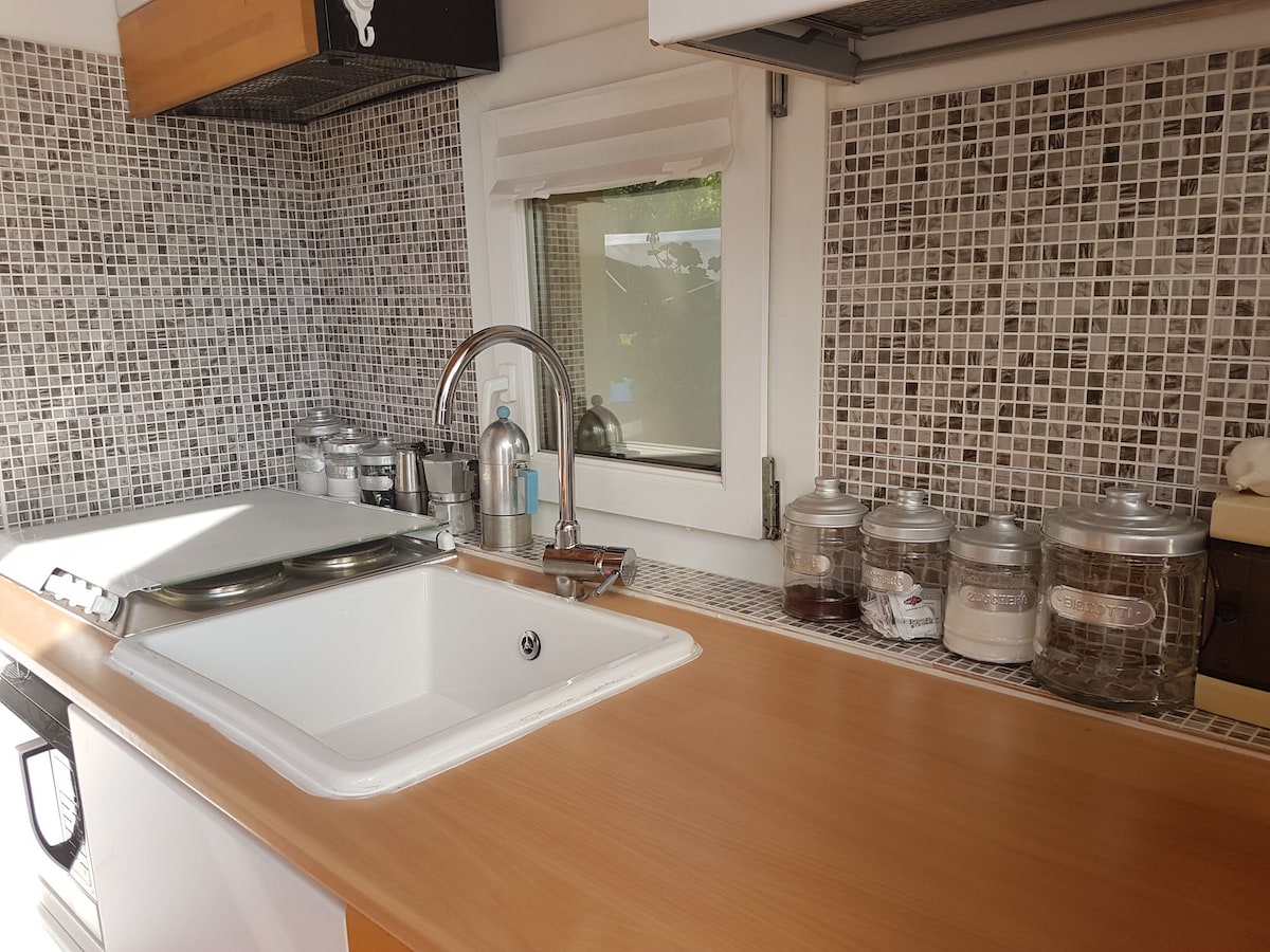 Depandance di 60 mq immersa nella natura ricca d'intimità, comfort e relax. Situato al primo piano di una villa, in un delizioso paesino in riva all'Adige. Completamente indipendente munita di tutti i confort: doppia TV cucina, bagno, camera da letto doppia, climatizzata. Due terrazze panoramiche, Giardino con zona relax, area gioco, sport. Situato all'inizio della pista ciclabile Adige Po, offre un punto di partenza verso le principali città d'arte: Ferrara, Bologna, Padova, Vicenza e Verona