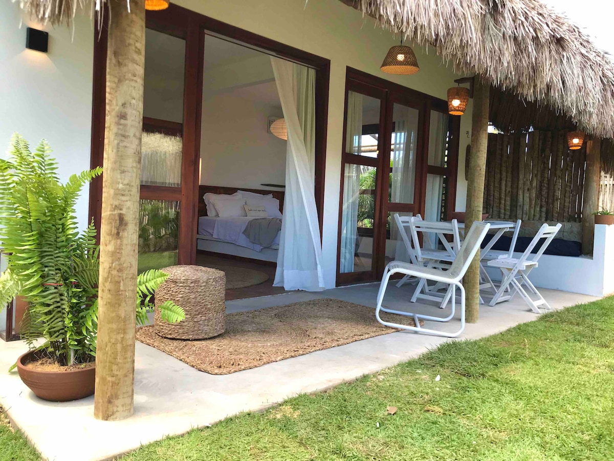 A Villa Aura é uma encantadora vila privativa de 268m2 composta por 3 quartos e 3 banheiros, localizada a 150m da praia e a 300m da maior escola de kitesurf do Brasil, o Rancho do Kite. A Villa Aura possui uma piscina privativa e um terraço de 45m2 com uma vista excepcional para o mar. Cercada por um jardim tropical, a Villa Aura combina o charme da arquitetura tradicional e o conforto moderno com ar-condicionado e água quente. A Villa Aura é a garantia de uma estadia em um cenário mágico.