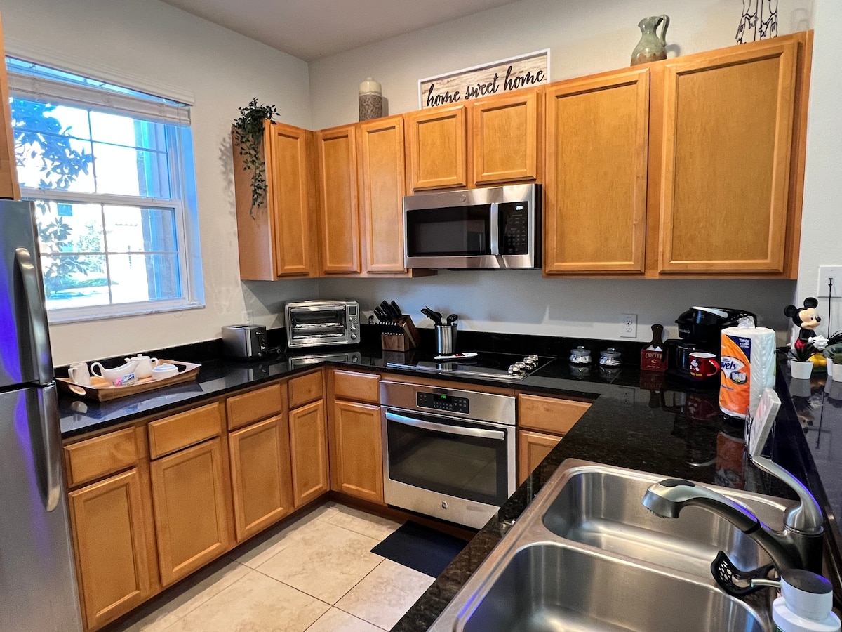 Մեր շքեղ 2 մահճակալը 2,5 բաղնիքով թաունհաուսը գտնվում է շքեղ Ռեգալ Օուքս հանգստավայրում, որը գտնվում է Հին քաղաքի թեմատիկ զբոսայգու անմիջապես հետևում և Դիսնեյլենդից, խանութներից, ռեստորաններից և ավելին: Մեր տանը դուք կգտնեք հյուրասենյակ/ճաշասենյակ combo և խոհանոց, որտեղ կարող եք պարծենալ Չժանգոտվող պողպատից կենցաղային տեխնիկա և գրանիտե սեղանածածկերը: Ննջասենյակի վերևում ՝ գեղեցիկ Միկի դեկորով հյուրասենյակ և մեկ գլխավոր առանձնաբաժին ՝ առանձին պատշգամբով, որտեղից բացվում է գեղեցիկ ֆունտի տեսարան և հսկայական բնապահպանական տարածք (բոլոր սենյակները ՝ առանց գորգի )։