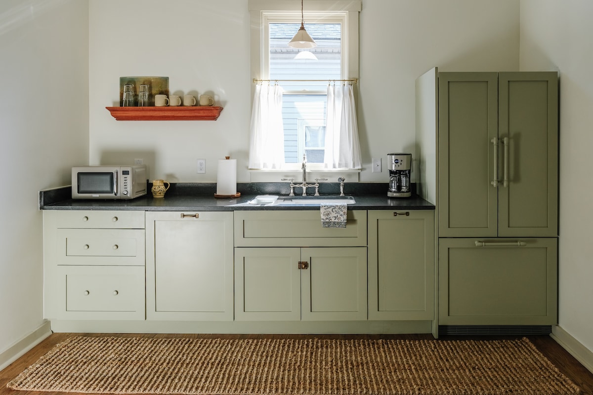 Ուրախ կլինենք ողջունել ձեզ մեր տան հյուրերի համար նախատեսված առանձնատանը ։ Դուք կունենաք առանձին մուտք և 3 սենյակ ։ Կա հյուրասենյակ ՝ սեղանով և աթոռներով, ննջասենյակ ՝ երկտեղանի մահճակալով, մահճակալներ, պահարան և պահարան ՝ կախիչներով, և նոր վերանորոգված լոգասենյակ ։ Միջանցքում կա նաև խոհանոցիկ, որը հնաոճ Hoosier պահարան է, որը հագեցած է միկրոալիքային վառարանով, մինի - սառնարանով, սուրճի կաթսայով և տաք ջրով: