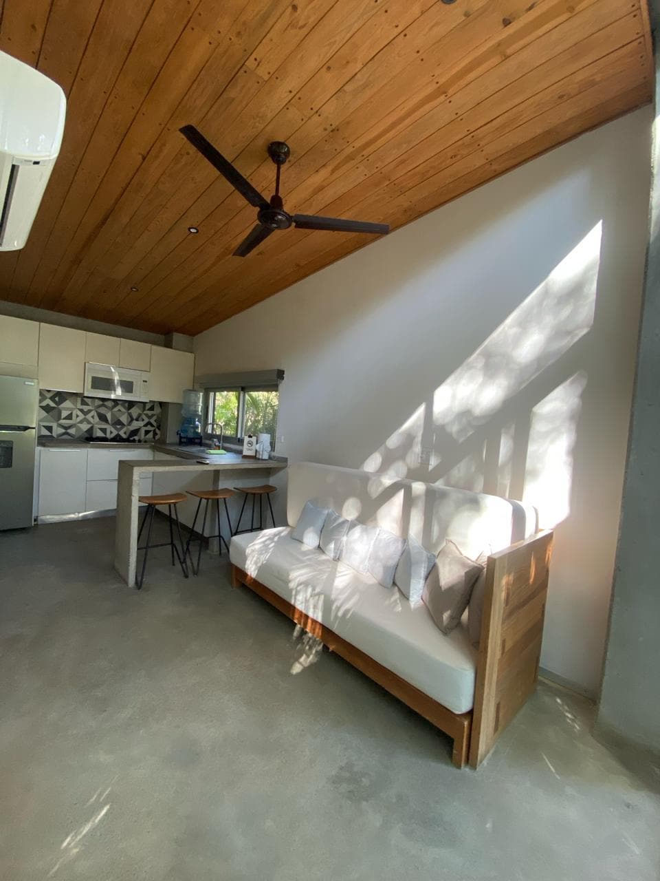 This vibrant, modern 600 SF loft-style casita owns some of the most spectacular views in Costa Rica from its private terrace. The meticulously designed space features countless creature comforts and was curated with attention to detail top of mind. Everything is brand new and high end. Super fast WIFI and a standing desk provides working travelers an ideal set up. The full kitchen is precisely stocked with everything you need to eat well on your stay. Even the shower has sweeping views.