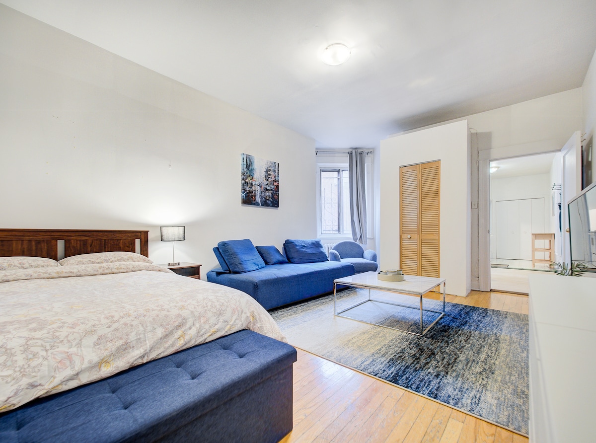 Experience modern comfort in the heart of Montréal’s Golden Square Mile, where elegance meets convenience. This spacious 1-bedroom suite comfortably accommodates up to 6 guests, featuring a queen bed and two sofa beds—perfect for families, business travelers, or small groups exploring the city.