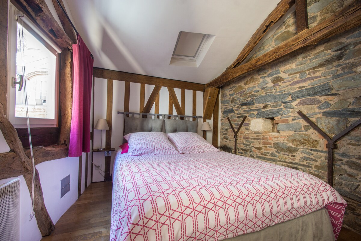 Բարի գալուստ մեր տուն ։ Մի քանի օր անցկացրեք գեղեցիկ Ռեն քաղաքի սրտում գտնվող հանգիստ և լավ կահավորված բնակարանում ։ Այն գունագեղ, երբեմն ապշեցուցիչ բնակարան է, որտեղ հաճելի է ապրելը ։ Դուք կարող եք վայելել հանգիստ երկտեղանի ննջասենյակ, հյուրասենյակ ՝ կահավորված խոհանոցով և փոքրիկ կտուրով, եթե ցուրտը ձեզ չի վախեցնում: Պատերը ծածկված են մեզ համար թանկ հիշողություններով և գործերով ։ Շնորհակալություն ձեր այցի ընթացքում մեր կոկոնը հարգելու համար ։ Կհանդիպենք շուտով ։