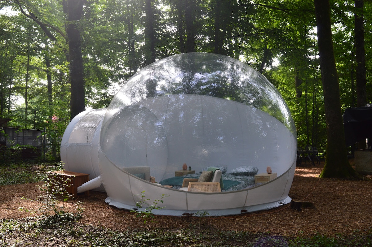 Ապրեք յուրահատուկ փորձառություն անտառում ՝ մեր պղպջակների վրանով, որն առաջարկում է բնության համայնապատկերային տեսարաններ ։ Հարմարավետ քնեք աստղերի տակ և վայելեք առանձին լոգասենյակ ՝ տաք ջրով և չոր զուգարանակոնքով ։ Բացօթյա խոհանոցը թույլ է տալիս պատրաստել ձեր կերակուրների ալֆրեսկոն: Հունիսի 1 - ից հասանելի կլինի առանձին ջակուզի ։ Ձեզ սպասում է էկոլոգիապես մաքուր և հարմարավետ տուն ։ Ամրագրեք հիմա և վայելեք անմոռանալի հանգիստ ։