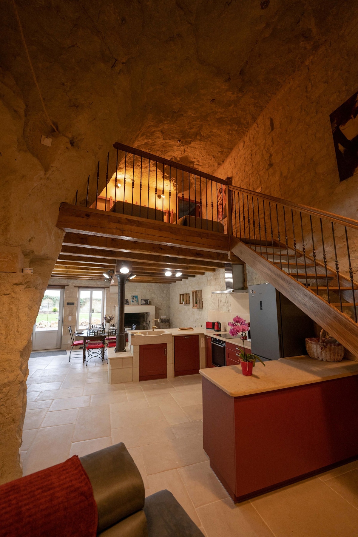 Մեր քարանձավը գտնվում է Լոկեսի եզրին, որտեղից բացվում է հիանալի տեսարան դեպի դղյակը, մասնավոր տեռասը և մանղալը. այն կարող է տեղավորել զույգ և, հնարավոր է, երկու երեխա: Քաղաքի կենտրոնին շատ մոտ կարող եք ձեր մեքենան թողնել փոքր մասնավոր կայանատեղիում և ամեն ինչ անել ոտքով (քաղաքի կենտրոնից 10 րոպե հեռավորության վրա )։ Կարող եք նաև բացահայտել գեղեցիկ վայրեր ՝ Amboise, Chenonceaux, Beauval Zoo, Montrésor... Մենք առաջարկում ենք, երբ հնարավոր է, նախաճաշել 1 - ին օրը ։