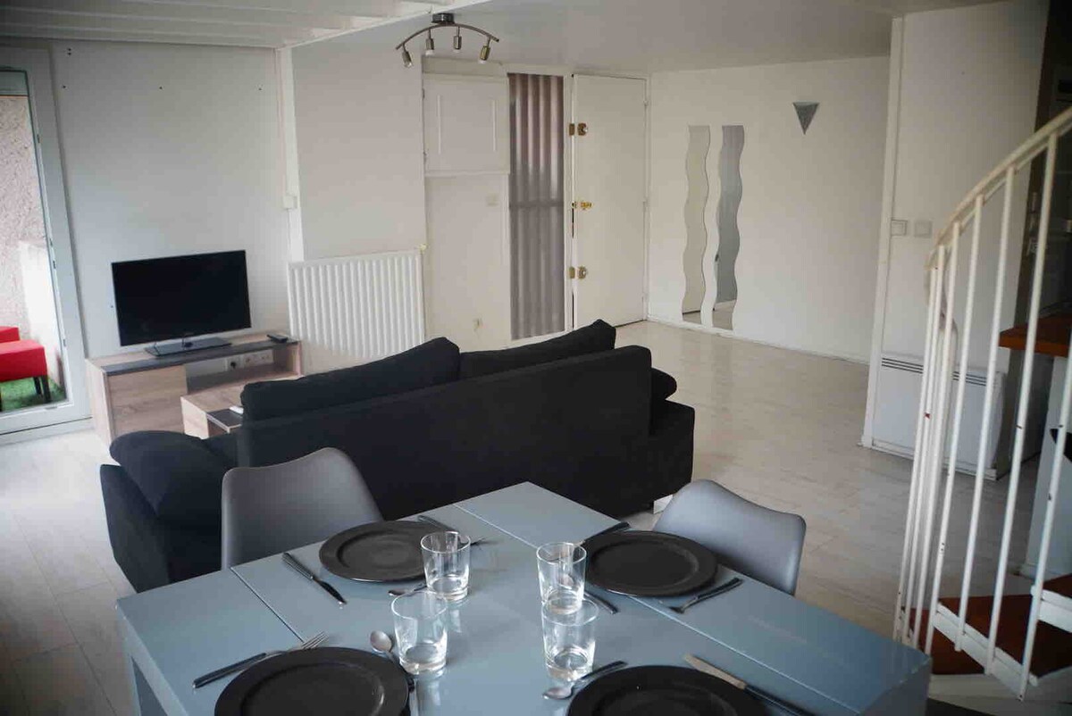 Հանգստացեք այս ատիպիկ և անխռով կացարանում ։ Առևտրի կենտրոնից քարե նետում, որն առաջարկում է տարբեր ապրանքանիշեր և ավտոկայան ՝ բազմաթիվ ավտոբուսներով, որոնք ձեզ իջեցնում են Օրսեյում կամ Մասի - Պալաուում ։ Բնակավայրի ներքևում ՝ հացաբուլկեղեն և դեղատուն ։ Այս դուպլեքսն առաջարկում է հարմարավետ ննջասենյակ, ժամանակակից լոգասենյակ և կոկոնային հյուրասենյակ, որտեղ կա այն ամենը, ինչ անհրաժեշտ է հաջող այցի համար ։