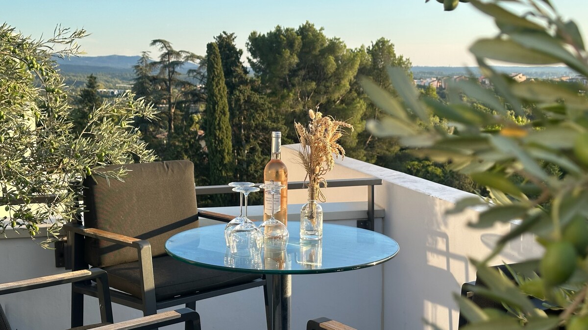 Հանգստացեք 45 մ2 մակերեսով այս յուրահատուկ և հանգիստ կացարանում Գտնվելով բնության սրտում ՝ այս կացարանը գտնվում է իդեալական վիճակում ՝ խոշոր մայրուղիներից, Էքս TGV կայարանից և Մարսելի Պրովանս օդանավակայանից րոպեներ հեռու Դուք կունենաք մինչև 37 աստիճան տաքացվող մասնավոր սպա և տեսապրոյեկտոր ձեր սպա և կինոթատրոնների երեկոների համար: 30 մ2 մակերեսով կտուրը թույլ կտա վայելել խաղաղ և անտառապատ արտաքին տեսքը ։