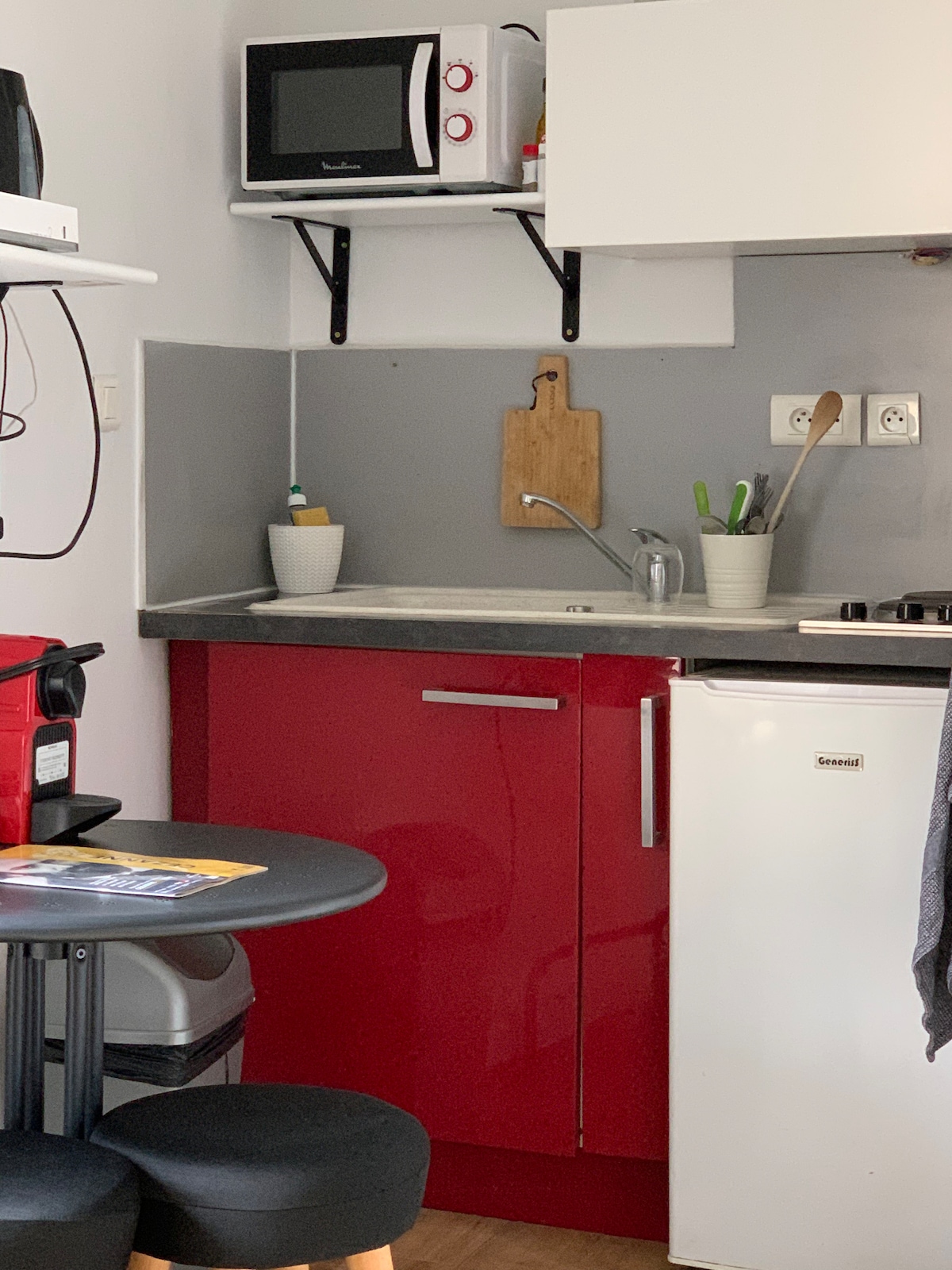 Վայելեք նորաոճ մնալու տեղ ՝ Էքս ան Պրովանս քաղաքի պատմական կենտրոնի սրտում ֆունկցիոնալ ստուդիա առաջին հարկում ՝ քաղաքի բոլոր տեսարժան վայրերին մոտ, կացարան բավականին աշխույժ տարածքում ՝ ռեստորաններով և խանութներով ։ երկու հոգու համար նախատեսված ներքնակով մեզանին, լուսավոր հյուրասենյակ ՝ մեծ պատուհանով, խորտկարանի տարածք և թախտ կահավորված խոհանոց ՝ անհրաժեշտ պարագաներով լոգասենյակ ցնցուղով և զուգարանով տրամադրվում են սպիտակեղեն և սրբիչներ