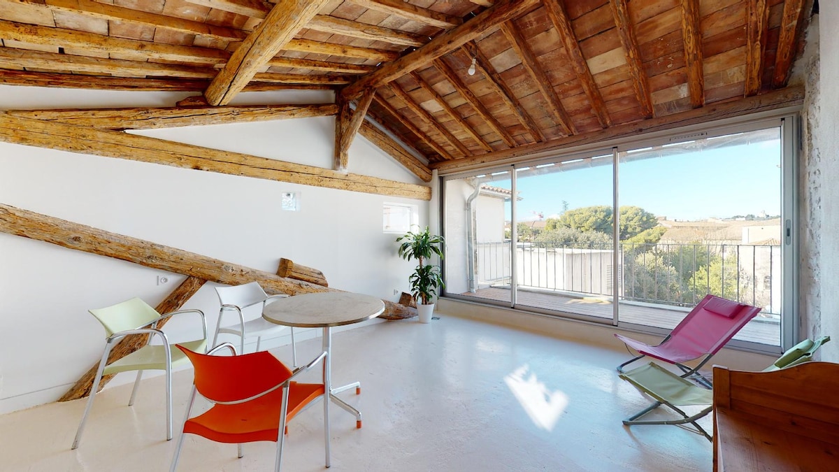 Լուսավոր բնակարան ապահով և հանգիստ բնակարանում, 2 - րդ հարկում ՝ հյուրասենյակով, կահավորված խոհանոցով, ննջասենյակով, լոգասենյակով և առանձին զուգարանակոնքով ։ Շրջադարձելի օդորակիչ, հարավում գտնվող, գեղեցիկ տեռաս ՝ բացօթյա հանգիստը վայելելու համար ։ Ժան Ժաուրես պողոտայից 50 մ հեռավորության վրա և Լա Ֆոնտենի, Տուր Մագնեի, Արենասի և Մեզոն Կառեի այգիներից 10 րոպե հեռավորության վրա: Մոտ է բոլոր հարմարություններին և երկաթուղային կայարանին ։ Տրամադրվում են սպիտակեղեն և լոգարանի սրբիչներ ։