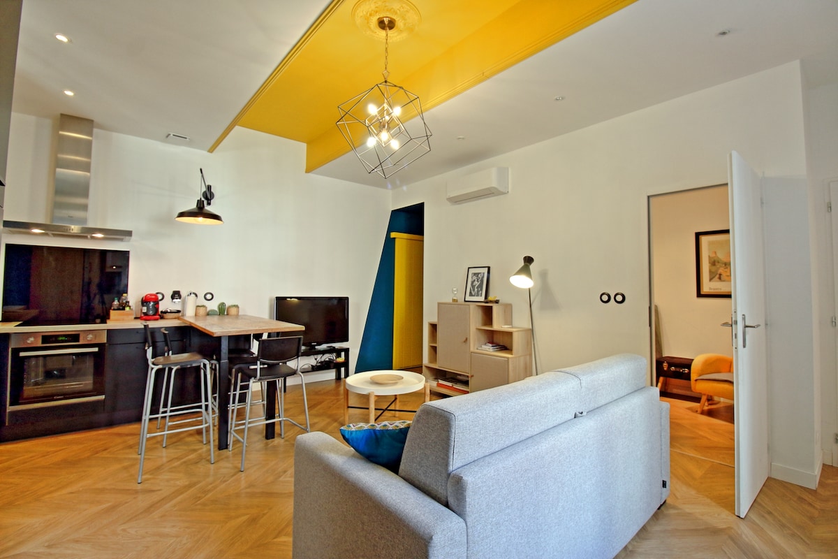 Bienvenue au Quai Nîmois, un appartement lumineux et climatisé, idéalement situé face à la gare SNCF de Nîmes, au dernier étage ( sans ascenseur ) d’un immeuble typique. Parfait pour un séjour touristique en famille ou un voyage d’affaires, ce logement combine design contemporain, confort haut de gamme et emplacement stratégique, à quelques minutes à pied seulement des Arènes de Nîmes, du centre historique, et de toutes les commodités.
