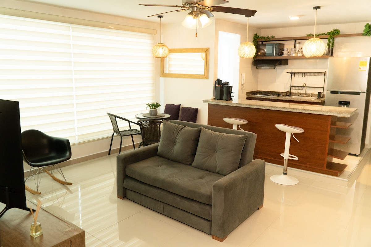 Ժամանակակից և հարմարավետ բոլորովին նոր բնակարան Բարրանքիլայի բնակելի տարածքում ։ Կատարյալ է ընտանիքների կամ խմբերի համար ։ Ներկայացնում է Wi - Fi, A/C, ամբողջական խոհանոց, լվացքի մեքենա, լողավազան և Smart TV ՝ Netflix - ով և Prime Video - ով ։ Ընդամենը 5 րոպե մեքենայով կամ 10 րոպե քայլելով առևտրի կենտրոններից, Universidad del Norte - ից և Clínica Portoazul - ից ։ Հարմարավետություն, հիանալի տեղադրություն և անվտանգություն ՝ բոլորը մեկ տեղում ։
