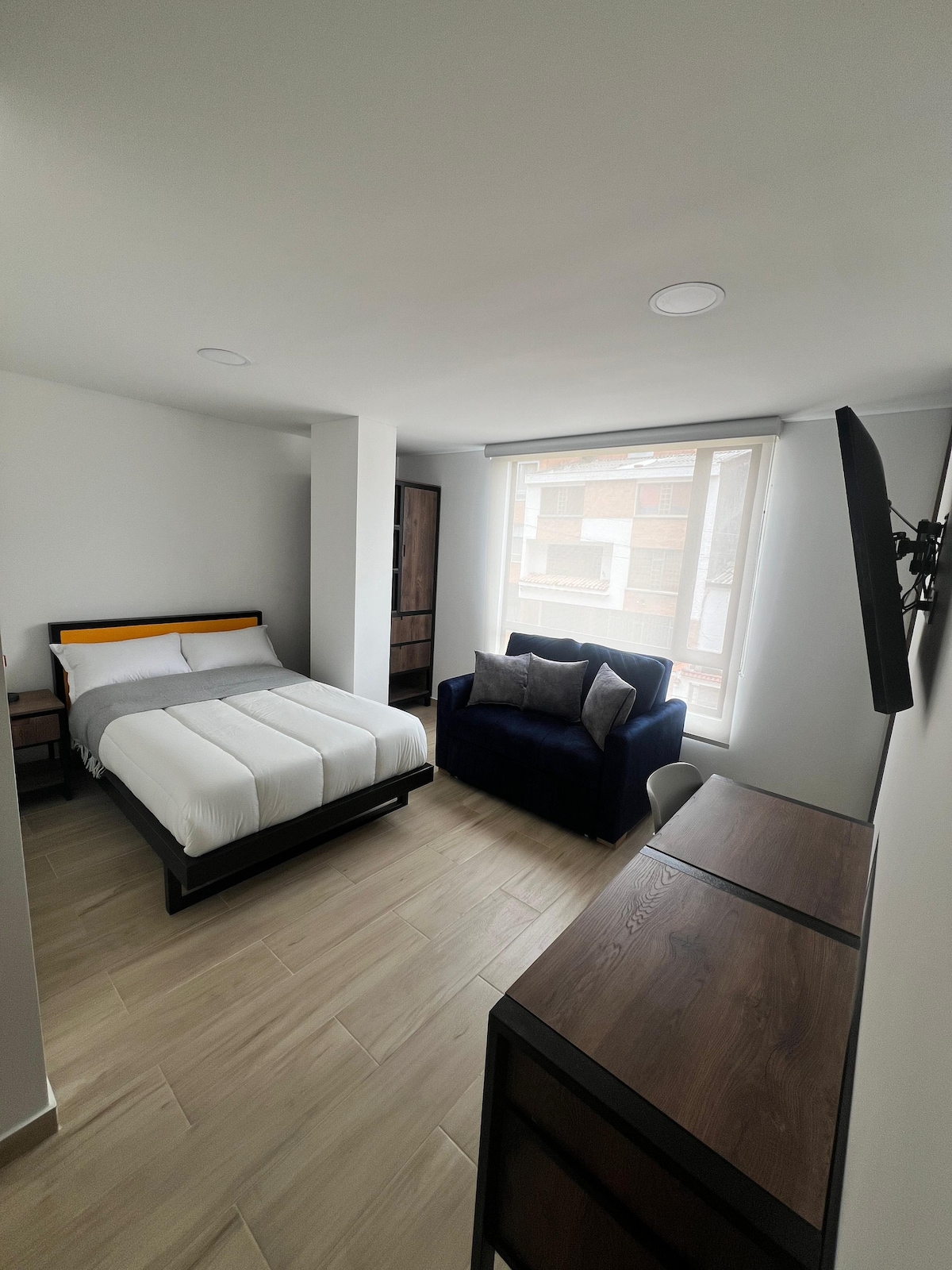 Հյուսիսային Բոգոտայում գտնվող մեր պրեմիում բնակարանը միավորում է հարմարավետությունը, դիզայնը և ռազմավարական դիրքը ՝ կատարյալ գործնական կամ երկարաժամկետ այցերի համար ։ 📍 Քայլեր Bulevar Niza - ից, Parque La Colina - ից, Unicentro - ից, Usaquén - ից և TransMilenio Niza 127 - ից ։ 🌟 Ընդարձակ, լուսավոր և հանգիստ տարածքներ ՝ հյուրասենյակով, Սմարթ հեռուստացույցով, կահավորված խոհանոցով, ուսումնական և գերարագ Wi - Fi - ով, ինչպես նաև վերելակով ։ 🏢 Վայելեք մարզասրահը, լվացքատունը, խաղասենյակը և ժամանակակից համագործակցությունը: