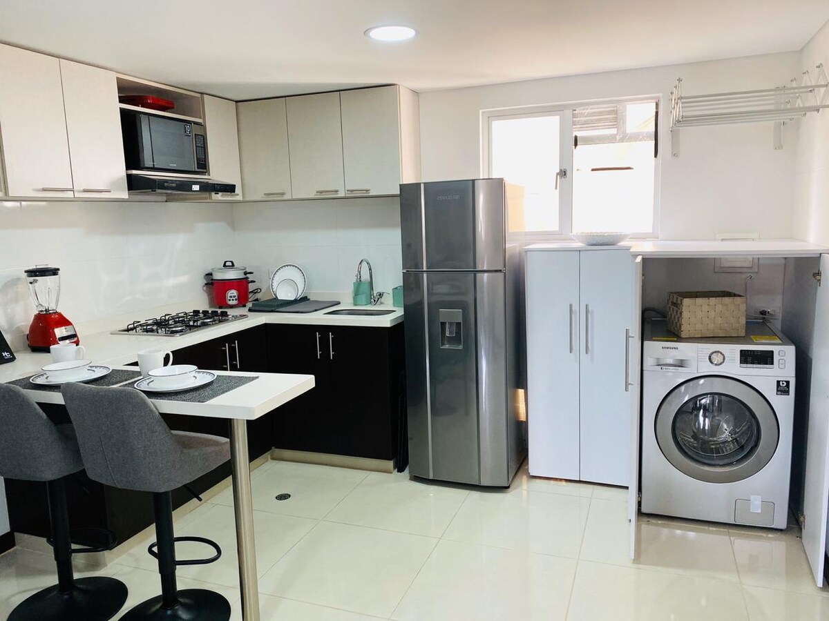 Encantadora suite en el corazón de Bgtá, ideal para parejas o viajeros. Decoración elegante, cocina equipada y cómoda cama doble. Balcón privado con vistas impresionantes, Zonas Sociales como Area de Lavado, gym, mesa de billar y ping-pong, CoWo, terraza BBQ en el último piso con vista de 360° y seguridad 24 hrs. Cerca de mercados, museos, restaurantes en La Macarena, Monserrate, La Candelaria, Mall San Martín y el Centro Internacional. ¡Descubre lo mejor de Bogotá desde esta maravillosa Suit!