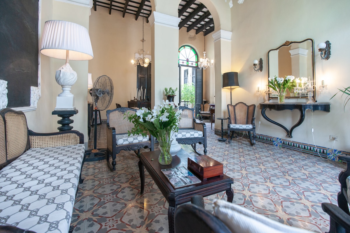 Սենյակ շքեղ գաղութային ոճի տանը, որը նայում է ներքին պատիոյի վրա։ Շատ հանգիստ կացարան գիշերելու համար։ Ավելի քան 5 մետր բարձրությունը թույլ է տվել լոգասենյակը տեղադրել սենյակի ներսում՝ բնորոշ միջհարկում Տունը «Vogue America»-ի կողմից ընտրվել է որպես Հավանայի 8 ամենագեղեցիկ տներից մեկը։ Airbnb-ի նախագահ Բրայան Չեսկին (նկարներ Դենսիլի հետ մեր տանը) այստեղից հայտարարեց NBC-ով Airbnb-ի բացումը Կուբայում։ Մենք միշտ ունենք էլեկտրականություն։ ԱՆՎՃԱՐ WI-FI