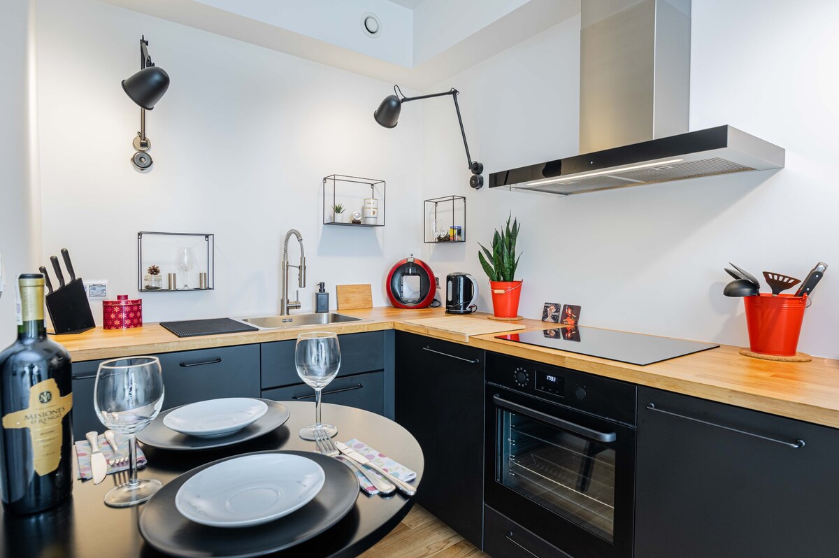 AmSuites - Բացահայտեք շքեղության, հարմարավետության և դիզայնի յուրահատուկ խառնուրդ այս նորաոճ քաղաքային բնակարանում, որը կատարյալ է ռոմանտիկ հանգստի, հեռավար աշխատանքի կամ քաղաքի հանգստի համար: ✨ Առանձնահատկություններ ՝ - 🧖♂️ Ամբողջ տարվա ընթացքում ջեռուցվող ջակուզի ՝ 55մ ² առանձին տանիքի տեռասում - 📺 55” Սմարթ հեռուստացույց - ❄️ Օդորակում, գերարագ Wi - Fi և ամբողջական խոհանոց - Ներառված է 🚗 անվտանգ ավտոտնակ Թրջվեք աստղերի տակ, հանգստացեք հանգիստ հարմարավետությամբ և անմոռանալի դարձրեք Վարշավայի ձեր հանգիստը ։