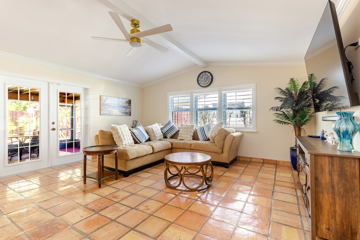 TWO BLOCKS TO PUBLIC BEACH! Completely renovated coastal modern dream vacation home in the heart of Deerfield Beach! Tons of space with large private/fenced back yard, big green space & grill, washer-dryer: all for your own personal & exclusive use. Walk two blocks to public beach, pier, boardwalk, nightlife & amazing restaurants. Surf, boat, fish, swim in the ocean. Two luxurious & clean bedrooms & two baths, + pull out queen sofa bed. Bright sunroom eating area. Bonus Ping Pong game room!