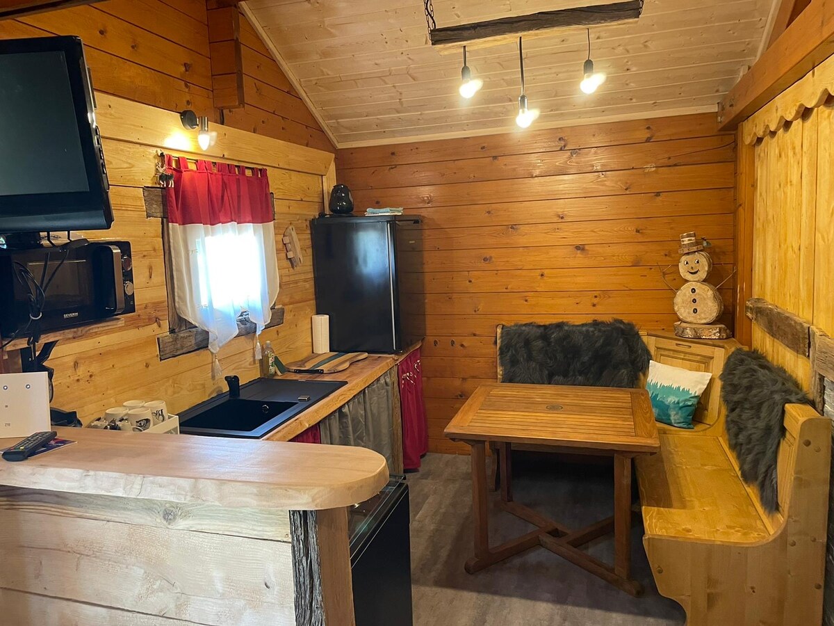 Cabin located in the heart of Haut Jura Mountains at 1100 m. Total immersion in nature with a breathtaking view of the valley and the stream below. Many walks nearby: mountains and waterfalls. Ideally located in the countryside and close to the village of La Pesse with numerous shops (restaurants, bakery, delicatessen, cheese shop, supermarket). Fully equipped, insulated and heated: relax in peace and quiet in all seasons :) Come relax under the stars in the Hot Nordic bath