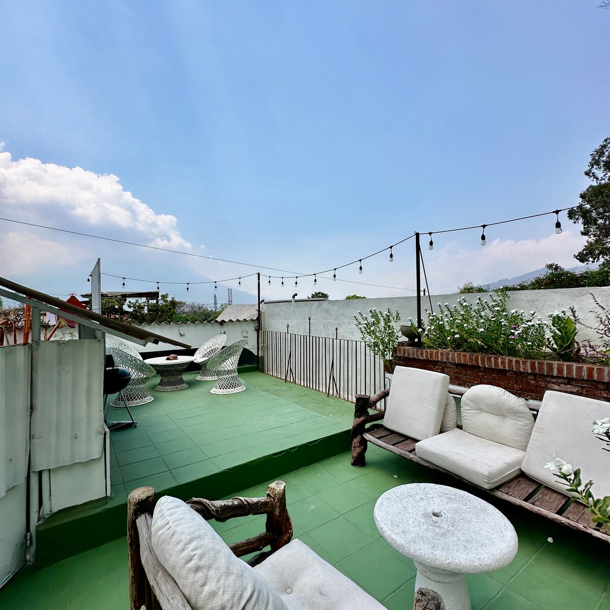 Private and spacious studio apartment with parking included, terrace and volcano view, surrounded by a beautiful green Spanish backyard, located within walking distance from all the main points of Antigua. You may rent additional accommodations in the complex (villa, casa), according to your group’s needs. Do write to us to find out more! Best of all: we absorb all Airbnb commissions for you so you don't have to pay more :).