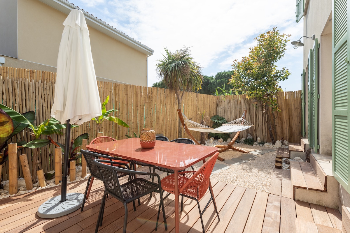 Լողափերից և Canal du Midi - ից 10 րոպե հեռավորության վրա գտնվող այս առանց աստիճանների տունը 2/4 հոգու համար է: Կարող եք վայելել մեծ լողավազան և 5/6 տեղանոց ջակուզի, մանղալ և տեռաս ՝ ճաշասենյակով: Բացօթյա հարմարությունները տրամադրվում են մեկ այլ տան ։ Ներառված են սրբիչներ, անկողնային սպիտակեղեն ։ Բեզիերից 10 րոպե հեռավորության ՎՐԱ Վալրաս Պլաժից 15 րոպե հեռավորության վրա 10 րոպե Պորտիրան Բիչում 25 րոպե ԳԼԽԱՐԿ Դ'ԱԳԴԵ Պեզենասից 25 րոպե հեռավորության վրա 35 րոպե Մոնպելյե հարավում