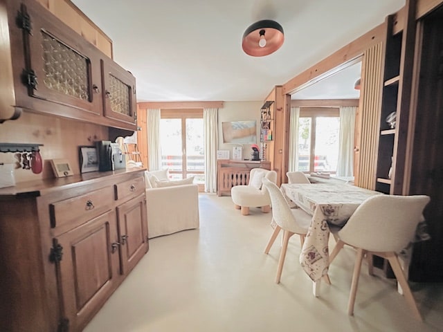 Հանգստացեք լեռան վրա գտնվող մեր ժամանակակից 85 մ² մակերեսով ապաստարանում։ Այս ամբողջությամբ վերանորոգված 2 ննջասենյականոց բնակարանը հիանալի տեսարաններ է առաջարկում և հարմարավետ է ընտանիքների կամ խմբերի համար։ Այն ժամանակակից դիզայնով, ֆոնդյուի հավաքածուով լիովին կահավորված խոհանոցով և երկու պատշգամբով կատարյալ և նորաոճ հանգստի վայր է։ Վայելեք գերարագ Wi-Fi և բոլորովին նոր կահավորանք հմայիչ գյուղական միջավայրում, որը իդեալական է ձեր հաջորդ ալպիական հանգստի համար։