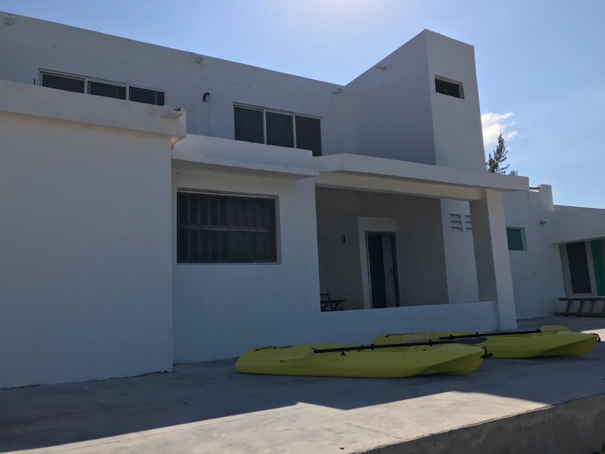 Մինիմալիստական ոճի տուն լողափի ափին, ունի երեք ննջասենյակ, երկու լոգասենյակ ՝ հագեցած տաք և սառը ջրով, խոհանոց, հյուրասենյակ ՝ օդորակիչով և ծովի տեսարանով լողավազան: Դուք կարող եք վայելել հանգստությունը այս գեղեցիկ նավահանգստի Dzilam de Bravo. Տունը գտնվում է նավահանգստից ընդամենը 500 մետր հեռավորության վրա: Տարածքում կարող եք գտնել բոլոր ծառայությունները, ձկնորսությունը, նավով ուղևորությունները, համեղ ուտեստները տարբեր ռեստորաններում, խանութներում, դեղատներում, եկեղեցիներում և այլն: