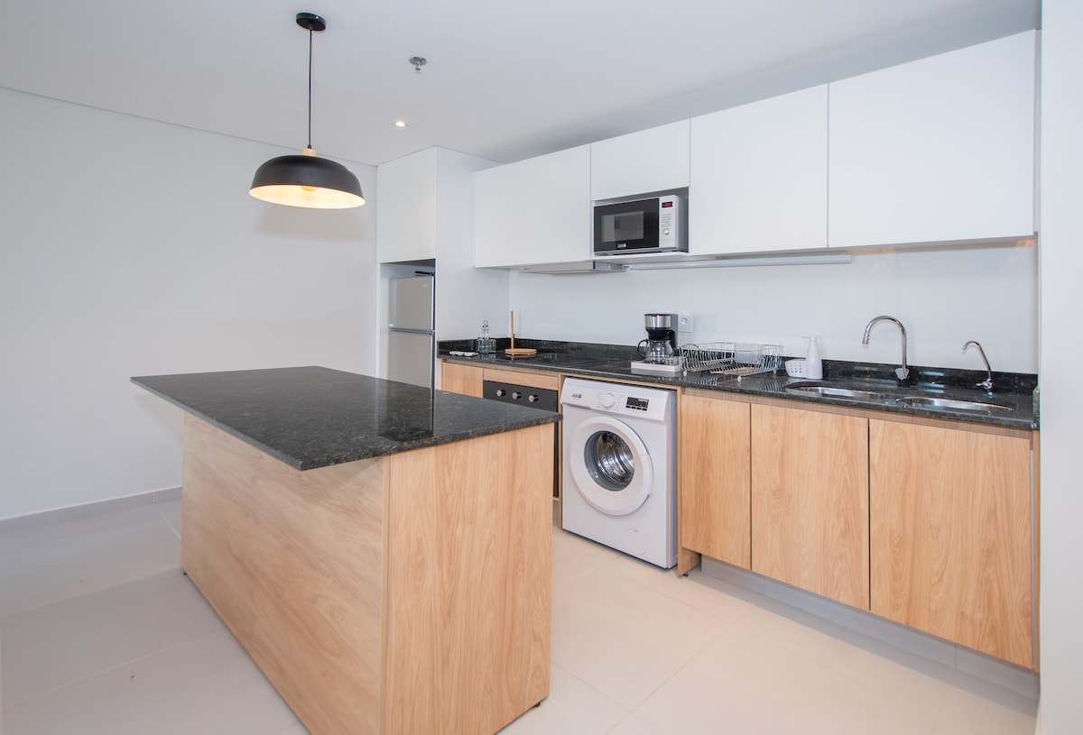 Ժամանակակից բնակարան, գերազանց կահավորված, պատշգամբով, գրիլով, 24-րդ հարկից համայնապատկերային տեսարանով և գերազանց ծառայություններով․ - լողավազան - Համագործակցություն - Կինչո - Կինոթատրոն – Կայանատեղի ինքնալիցքավորվող վերելակով (փոքր/միջին չափի մեքենա) - Անվտանգություն շուրջօրյա Հիանալի տարածք ՝ – 5 րոպե Corporate Axis, Shopping del Sol և Paseo La Galería առևտրի կենտրոններից։ - Կոստաներայից և Էրոես դել Չակո կամրջից 10 րոպե հեռավորության վրա։ - 15 րոպե Սիլվիո Պետիրոսիի միջազգային օդանավակայանից։ Ներառում է Wi-Fi · Սմարթ հեռուստացույց · Պրեմիում ներքնակներ