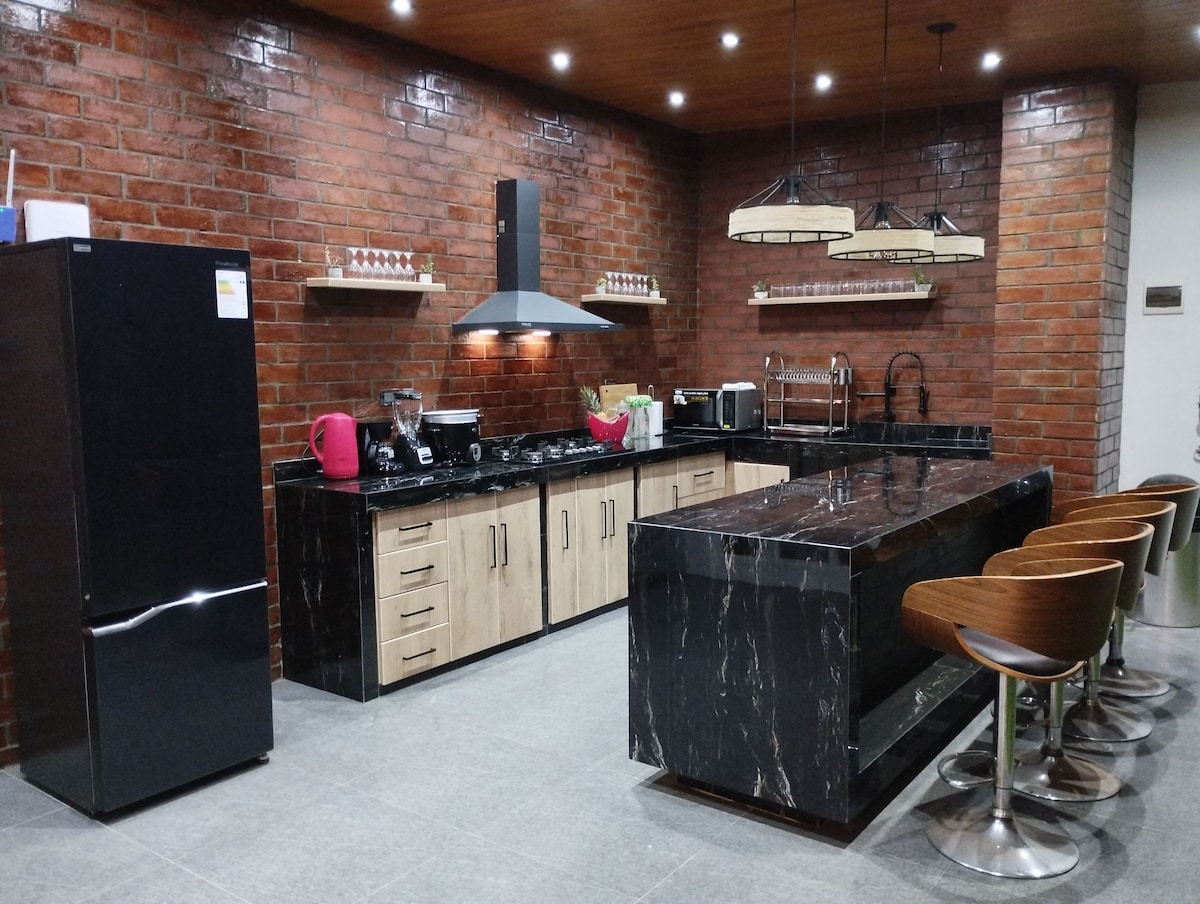 Lleva a toda la familia a este lindo lugar con muchas zonas para divertirse amplios espacios verdes cosina equipada dos habitaciones con cama nido king una trotadora y elíptica una mesa de billar y amplia piscina familiar una sala con chimenea