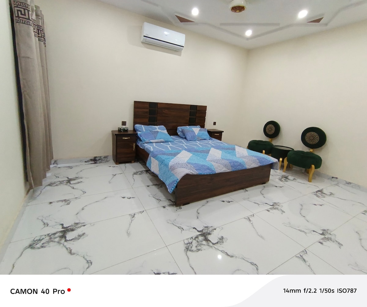 Բարի գալուստ Ֆեյսալաբադում գտնվող մեր անխռով կացարան, որը գտնվում է Canal Road - ից ընդամենը 2 կիլոմետր հեռավորության վրա ։ Իդեալական է ճանապարհորդների համար ՝ մեր տունը միավորում է քաղաքի ոգևորությունը խաղաղ հանգստի խաղաղության հետ: Երեք ննջասենյակ. յուրաքանչյուր ննջասենյակ հարմարավետ ապաստարան է ՝ ապահովելով հանգիստ գիշեր ։ Ընդարձակ հեռուստատեսային լաունջ. երկտեղանի լաունջ, որը կատարյալ է հանգստի կամ ժամանցի համար ։ Շքեղ լոգասենյակներ ։ Ճաշասենյակ և նկարչական սենյակ. նրբաճաշակ տարածք սննդի և հավաքույթների համար ։ Լիովին կահավորված խոհանոց. ապահովում է ձեր բոլոր խոհարարական կարիքները: