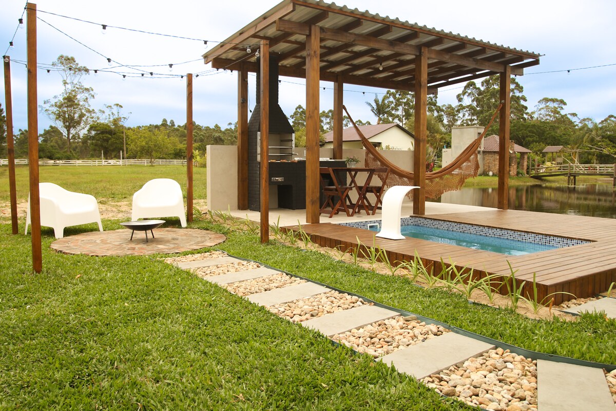 CASA DE CAMPO NA PRAIA-ն Ռիու-Գրանդի-դու-Սուլի ափին գտնվող ամենագեղեցիկ կացարանն է, որն ունի յուրահատուկ ճարտարապետություն։ ԱՌԱՋԻՆԻՆ ապամոնտաժված A-ձև տնակը։ Մենք առանձնացրինք երկու կողմերը՝ մեջտեղում ստեղծելով այգի, որը միացված է ապակե միջանցքով։ Հմայք, որը միայն մենք ունենք։ ;) Տունը սիրով էր նախագծվել, որպեսզի ունենա լավագույն տեսարանը։ Տեսարան, որը երբեք նույնը չէ... Արևամուտի լուսավորությամբ հմայիչ Իտապևա լագունը՝ հետին պլանում լեռների թեքությամբ։ Պոեզիայի պատրաստ։