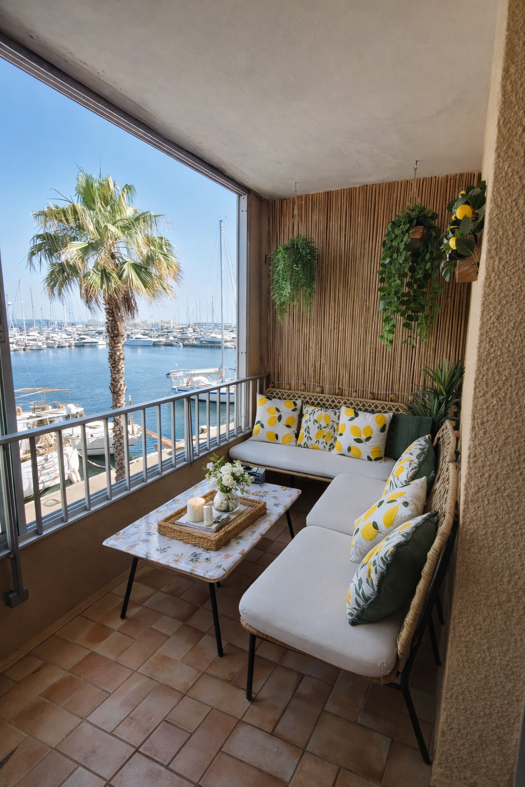 Charmant studio dans résidence privée, entièrement rénover avec tout confort, placé sur la rive droite, trés calme, au 2ème étage sans ascenseur, avec vue sur jardin et sur le port. Prés de toutes commodités, vieux village, marché,épicerie, bars, restaurants,plages, etc… L’appartement est non fumeur, il comporte un dressing, un lit double, un canapé lit, une cuisine moderne toute équipée, un toilette/cabine douche et un balcon. Place de parking privée. Les animaux sont interdits.