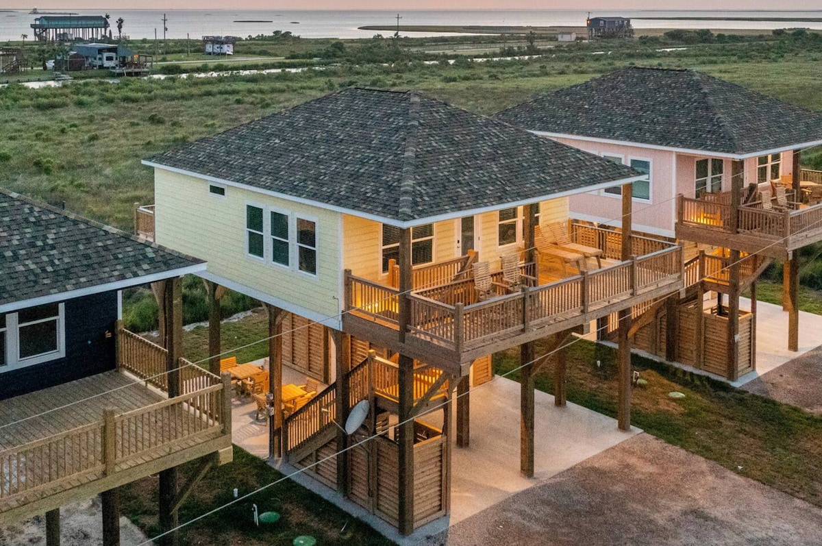 Welcome to our Gorgeous waterfront Lodge. ▪ Fully equipped kitchen. ▪ Sleeps 20 Guest max. ▪ Main bedrooms with Roku TVs, private bathrooms, and Galveston Bay views. ▪ bunk room with TV & full bathroom for the kids. ▪ Peaceful & Safe. ▪ Game room with a pool table and dart boards. ▪15 minutes to Kemah Boardwalk, 30 minutes to Galveston, & 5 minutes to 5-star restaurants Perfect for family reunions, weddings, & corporate events when combined with neighboring homes.