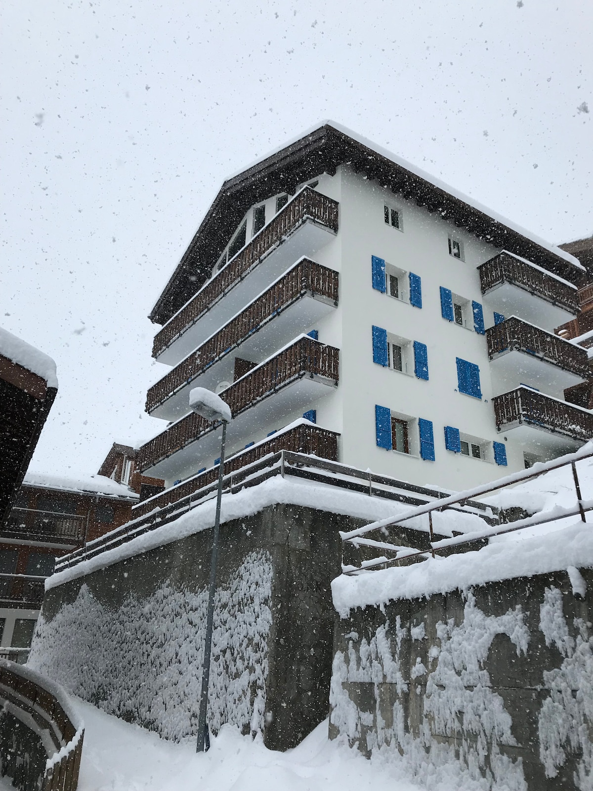 65 քմ մակերեսով 2 սենյականոց բնակարան 3 - րդ հարկում, ճաշասենյակ ՝ նախասրահ, ճաշասենյակ, հյուրասենյակ / քնելու սենյակ ՝ 2 ծալովի մահճակալներով (90x200 սմ), հեռուստացույց, 2 պատշգամբ, 2 պատշգամբ (դեպի հարավ ՝ Մատերհորնի գեղեցիկ տեսարանով, կահույքով և արևմուտքից). 1 ննջասենյակ ՝ 1 երկտեղանոց մահճակալով (2 90x200 սմ): Խոհանոց ՝ ջեռոց, ամանալվաց մեքենա, 4 կերամիկական ապակե ջեռոց, տաք կաղապարներ, միկրոալիքային վառարան, սառցարան, էլեկտրական սուրճի մեքենա: Լոգասենյակ լոգարանով/ ցնցուղով WIFI - ով: Հանգիստ տարածք, կենտրոնից 10 րոպե, բույսերից 6 րոպե: