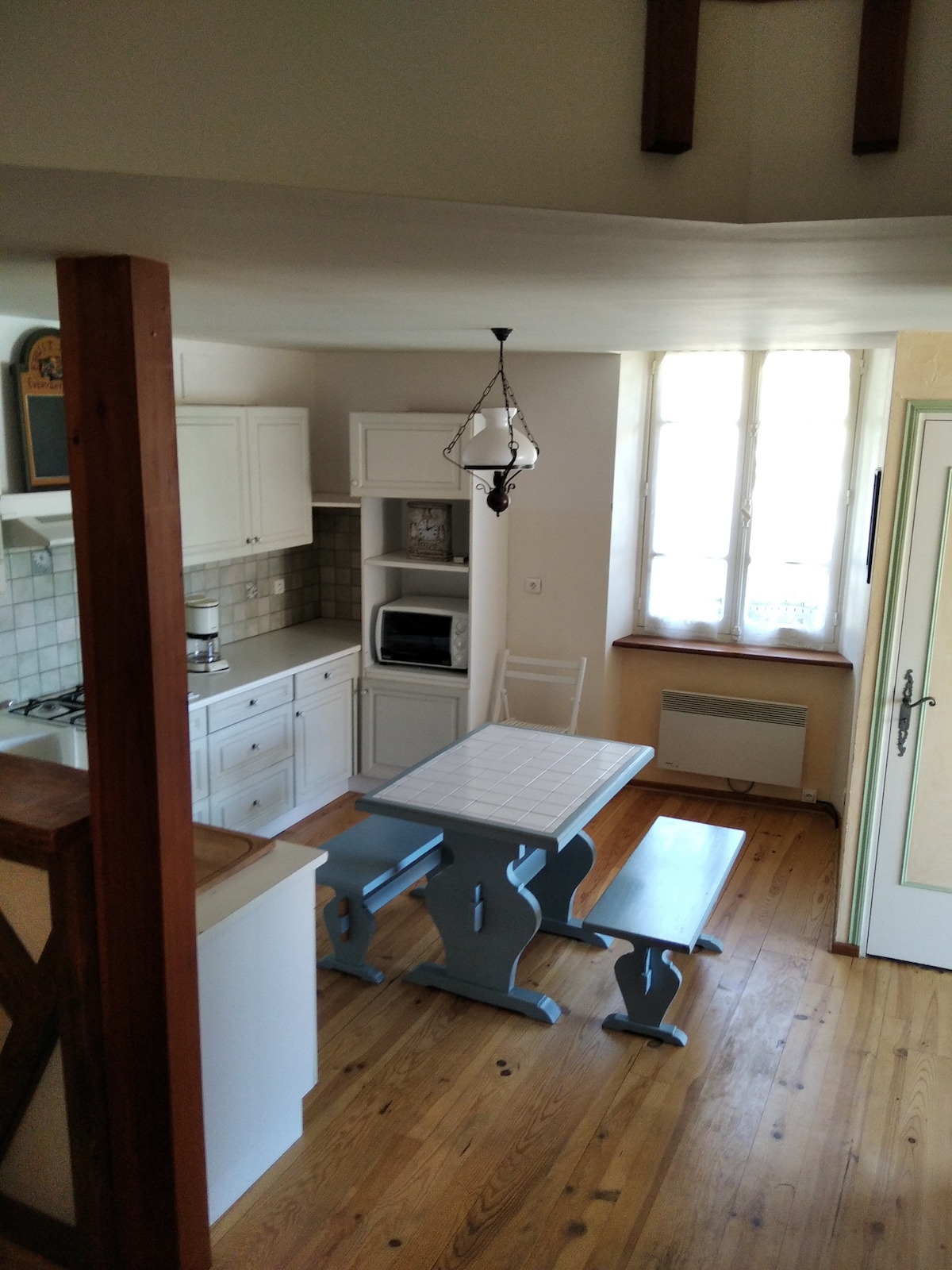 Գյուղի սրտում ՝ 16 -18 - րդ դարերի նախկին մենաստանում, ձեզ սպասում է 55 մ2 մակերեսով բավականին հարմարավետ դուպլեքս ։ Ամենահին շենքի 1 - ին և երկրորդ հարկում գտնվող իր մեծ ննջասենյակը, որը գտնվում է հենապատի տակ, իդեալական է զույգի համար ։ Հյուրասենյակում կարելի է ավելացնել լրացուցիչ մահճակալ 1 անձի համար ։ Ցնցուղի սենյակ և առանձին զուգարան, որը պահանջում է անցնել ննջասենյակով: Ընդհանուր ներքին բակում կարող եք նստել և կարդալ կամ ճաշել (բացօթյա կահույք )։
