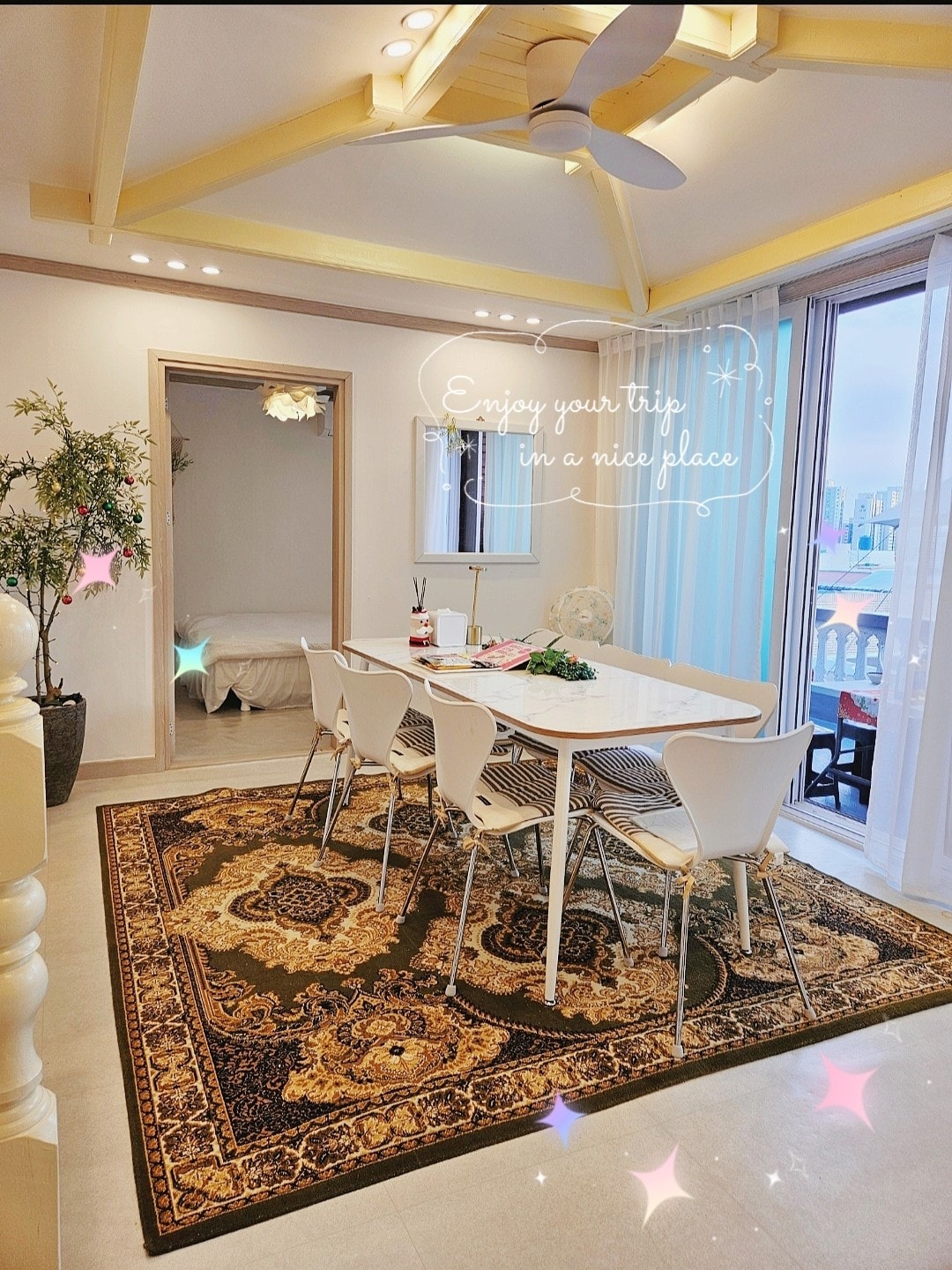 Սա նոր տուն է, որտեղ կարող են տեղավորվել ընդհանուր առմամբ 12 հոգի ՝ 6 մահճակալով (2 թագուհի, 4 սուպեր մեկտեղանի) և 4 անկողնային պարագաներով ։ Այն գտնվում է Գիմհեի օդանավակայանից 30 րոպե հեռավորության վրա, իսկ պատուհանից մոտ է Lotte Water Park - ին և Lotte Hotel - ին ։ Գտնվելով նորաստեղծ սննդի ծառուղու կենտրոնում ՝ մոտակայքում կան բազմաթիվ հարմարավետ հարմարություններ, ինչպիսիք են սնունդը և հիվանդանոցները: Հյուրանոցում օգտագործվող մահճակալներն ու անկողնային պարագաները տեղադրված են, այնպես որ կարող եք հարմարավետորեն հանգստանալ: Կա ճաշասեղան ՝ 10 հոգու համար նախատեսված շատ նստատեղերով ։ Մանկական մահճակալը, մանկական լոգարանը, մանկական աթոռը, մանկական սպասքը և այլն պատրաստ են ՝ այն դարձնելով երեխայի հետ ճանապարհորդելու հարմարավետ վայր ։(Խնդրում ենք նախապես պահանջել, եթե օրորոցի կարիք ունեք)