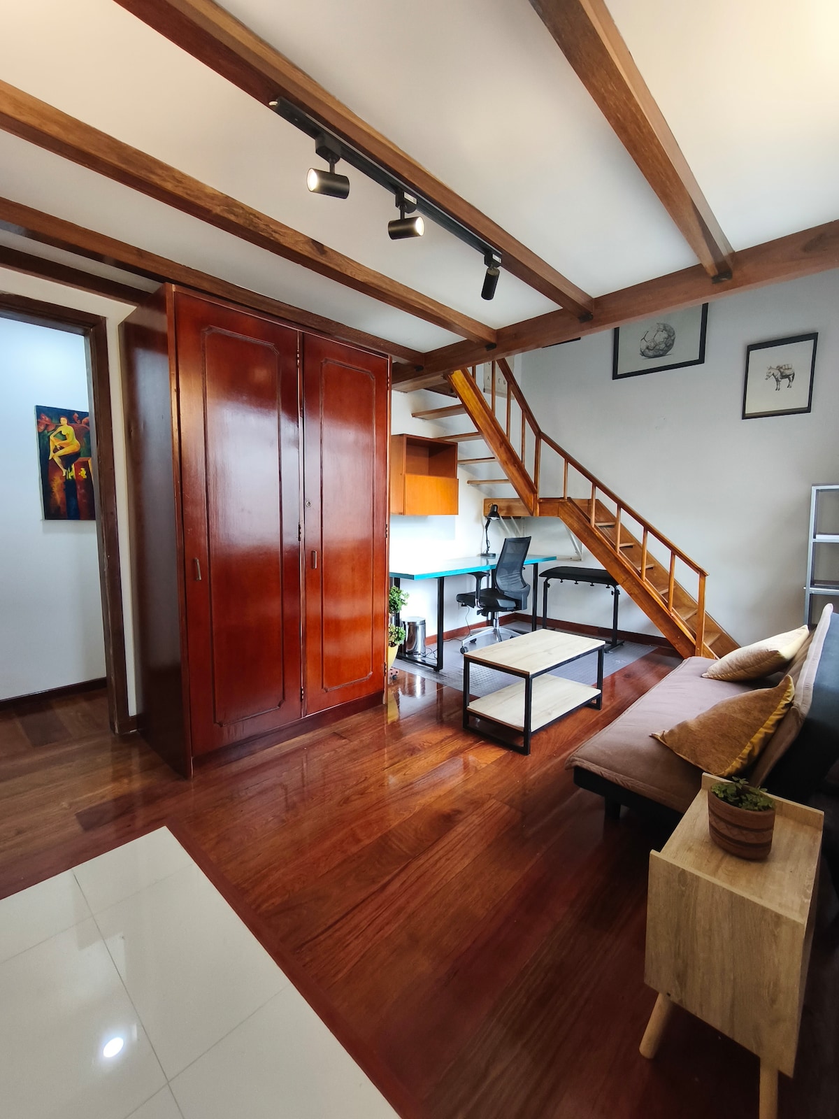 100% մասնավոր լոֆթ կացարան Բոգոտայում, որը գտնվում է անվտանգ բնակելի և առևտրային տարածքում, գտնվում է տան վերին հարկում, ունի լավ օդափոխություն, բնական լույս, ինչը ձեր հանգիստը կդարձնի հաճելի և հարմարավետ փորձառություն: Պատիոն լվացքատան տարածքն է, որը միակ ընդհանուր տարածքն է ։ Կացարանն ունի 150 մեգաբայթ ինտերնետ, խոհանոց ՝ պահարաններով, գազօջախ, սառնարան, ջուր, էլեկտրականություն, գազ, առանձին լոգասենյակ ՝ տաք ցնցուղով, ննջասենյակի մեզանին և Directv ծառայություններով: