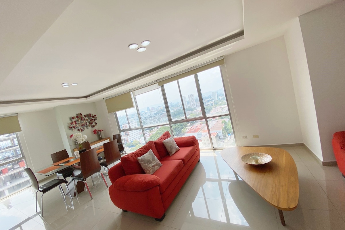 Հարմարավետ բնակարան ՝ բոլոր անհրաժեշտ տարածքներով և ծառայություններով, որպեսզի ունենաք հիանալի և հանգիստ հանգիստ հանգիստ, մնացեք Գվադալախարա քաղաքի իդեալական վայրում ՝ խորհրդանշական Միներվայի, Expiatory Temple - ի և հանրահայտ Paseo Chapultepec - ի մոտ, իդեալական տարածքում, որտեղ կարող եք փորձել քաղաքի լավագույն ռեստորաններն ու բարերը: ԿԱՅԱՆԱՏԵՂ ՉԿԱ