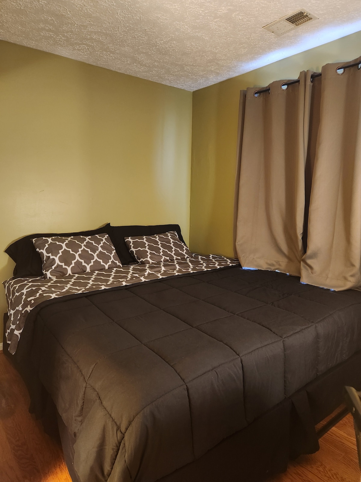 Ննջասենյակ ՝ մեծ մահճակալով և դռան կողպեքով ։