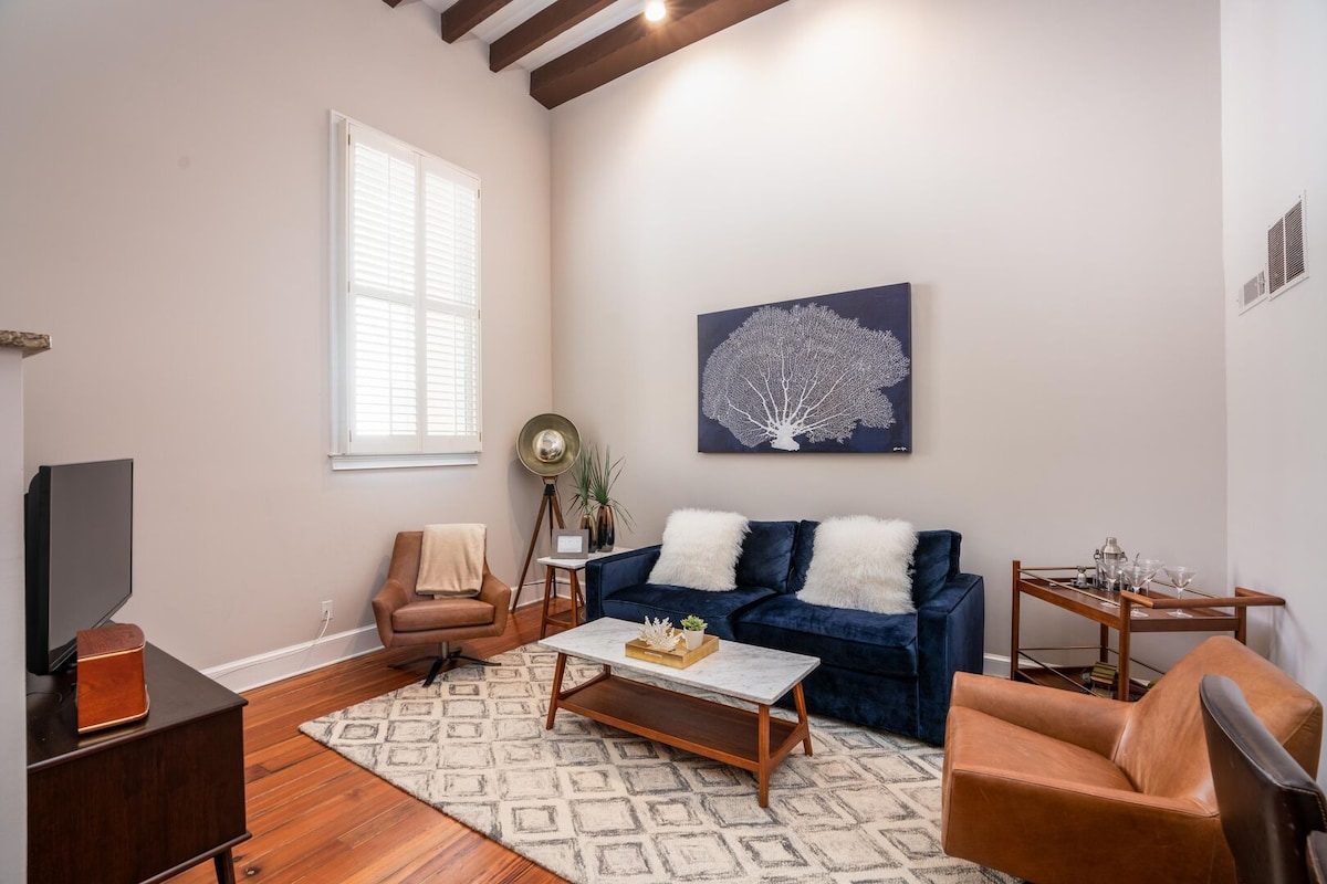 Վերադարձեք անցյալ այս նրբաճաշակ պատմական Չառլսթոնի բնակավայրում (OP2025-06356)։ 12 ֆուտ բարձրությամբ առաստաղները, փայլեցված փայտե հատակները և մեծ պատուհանները ստեղծում են նրբագեղ հանգստի տրամադրություն։ Հիմնական ննջասենյակը և վարագույրով արևասենյակը հարմարավետ են անկողնային հարմարությունների համար։ Գտնվում է քաղաքի կենտրոնում՝ խաղաղ, պատմական թաղամասում։ Հարմար է զույգերի կամ աղջիկների համար հանգստյան օրերին։ Առանձին մուտք, մանրամասնորեն նախագծված 93 քառ. մ տարածք։ Բացառիկ փողոցից դուրս կայանատեղի՝ էլեկտրական մեքենաների լիցքավորիչով։