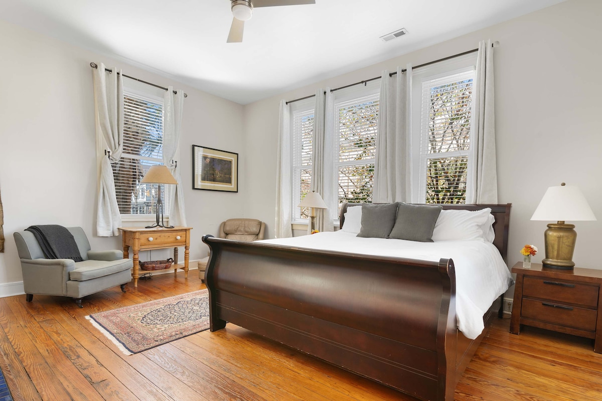 Վերադարձեք անցյալ այս նրբաճաշակ պատմական Չառլսթոնի բնակավայրում (OP2025-06356)։ 12 ֆուտ բարձրությամբ առաստաղները, փայլեցված փայտե հատակները և մեծ պատուհանները ստեղծում են նրբագեղ հանգստի տրամադրություն։ Հիմնական ննջասենյակը և վարագույրով արևասենյակը հարմարավետ են անկողնային հարմարությունների համար։ Գտնվում է քաղաքի կենտրոնում՝ խաղաղ, պատմական թաղամասում։ Հարմար է զույգերի կամ աղջիկների համար հանգստյան օրերին։ Առանձին մուտք, մանրամասնորեն նախագծված 93 քառ. մ տարածք։ Բացառիկ փողոցից դուրս կայանատեղի՝ էլեկտրական մեքենաների լիցքավորիչով։