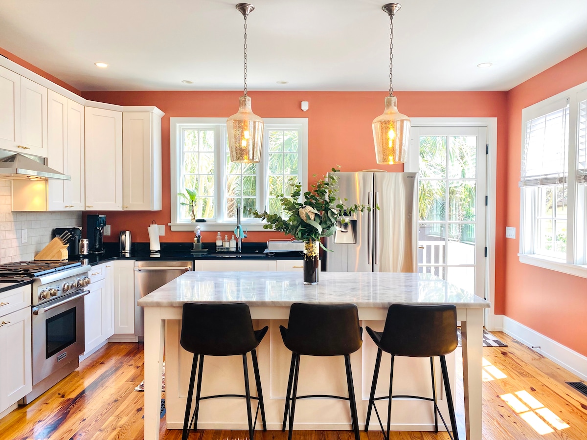This historic property was built in 1838 with original porches to this grand Charleston home. Full renovation in January 2023 to create the beachy, coastal, surf chic spot it is today. Updates include new kitchen, two new bathrooms & fresh paint. Relax surrounded by a fun vibe and great local art. Downtown dining and bars are a short stroll away but we are still tucked in the quiet neighborhood close to MUSC Hospital. Walkable to Upper King Street nightlife and dining.