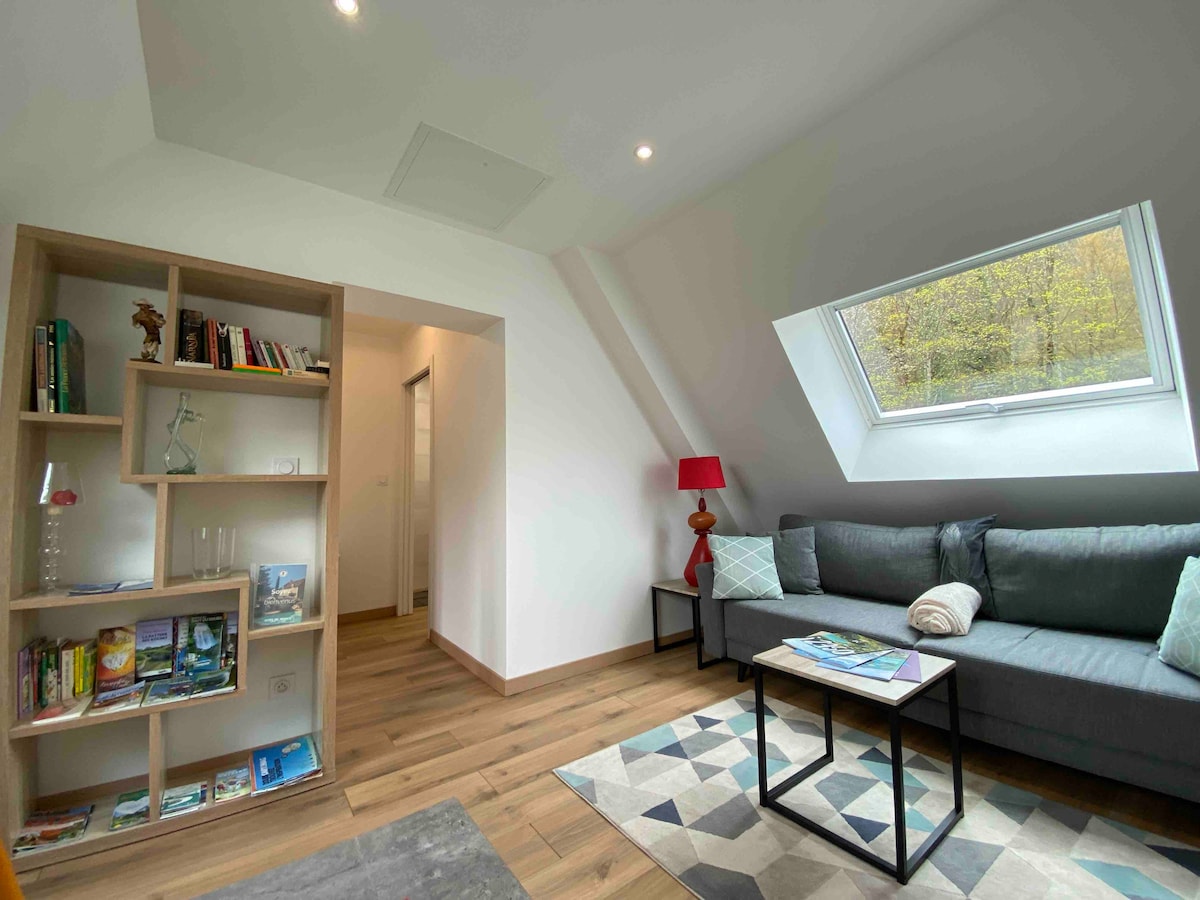 Հանգստացեք այս հանգիստ, էլեգանտ մասնավոր կացարանում Haut Doubs ազգային պարկում, 19 - րդ դարի Ֆրանս - Կոմտոիս ագարակատան 1 - ին հարկում, վերանորոգվել է 2023 թվականին, լիովին կահավորված: Առանձին մուտք ։ Հանգիստ, բնական միջավայր ՝ հարմարություններին մոտ (2 կմ )։ Դուք կգտնեք ննջասենյակ, ցնցուղով և զուգարանակոնքով լոգասենյակ, ճաշասենյակ ՝ իր լիովին կահավորված խոհանոցով և հարևան բլուրներին նայող առանձին տեռասով ։ Սպիտակեղենը տրամադրվում է: Անվճար կայանատեղի ։
