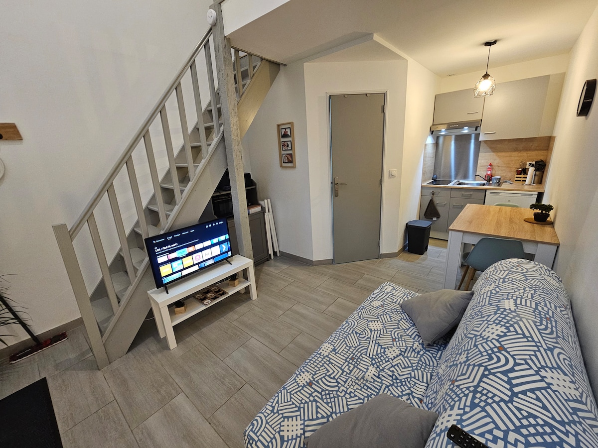 Մասնավոր սեփականությունում ՝ ավելի քան 20 մ2 մակերեսով անկախ դուպլեքս ստուդիա ։ Առաջին հարկում ՝ խոհանոց ՝ ճաշասենյակով, ցնցուղի սենյակ ՝ զուգարանակոնքով և լվացքի մեքենայով ։ Վերևի հյուրասենյակ ՝ բազմոցով և հեռուստացույցով ։ Իդեալական վայր է հանգիստ տարածքում, դուք կգտնեք ոտքով 15 րոպեից պակաս հեռավորության վրա ՝ Մելուն քաղաքի կենտրոն, Սենեի ափերը: Ուղղակի մուտք դեպի քաղաքի կենտրոն Վո լե Պենիլ ոտքով 5 րոպեի ընթացքում և ավտոբուսով դեպի Մելուն երկաթուղային կայարան (ուղիղ Փարիզը ՝ 25 րոպեում )։