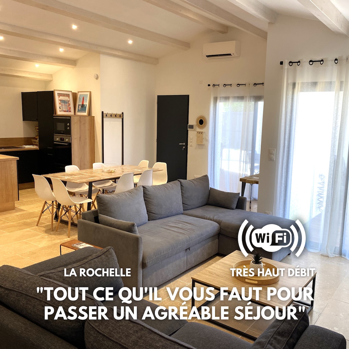 Բարի գալուստ Վիլլա Անդրե, Ուրախ ենք կիսվել ձեզ հետ մեր հասցեով ՝ հարմարավետ, ֆունկցիոնալ և կենտրոնամերձ տուն ՝ հաճելի հանգստի կամ հանգստյան օրերի համար ։ Լողափին, զբոսայգուն և խանութներին մոտ, Վիլլա Անդրեից կարող եք ամեն ինչ անել ոտքով: Մենք գտնվում ենք երկաթուղային կայարանի անմիջապես հարևանությամբ (Լա Ռոշելի կենտրոն կարելի է հասնել 7 րոպեում), լողափի և Chatelaillon զբոսայգու հարևանությամբ ՝ իր մանրանկարչական գոլֆի դաշտով և մանկական ընդարձակ խաղահրապարակներով: Կհանդիպենք շուտով :)